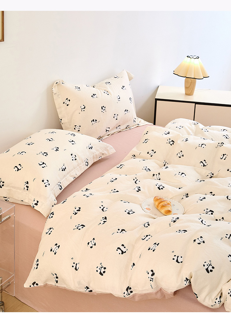 锦罗绣 2025新款全棉双层纱印花单被套(第二批) 国宝熊猫