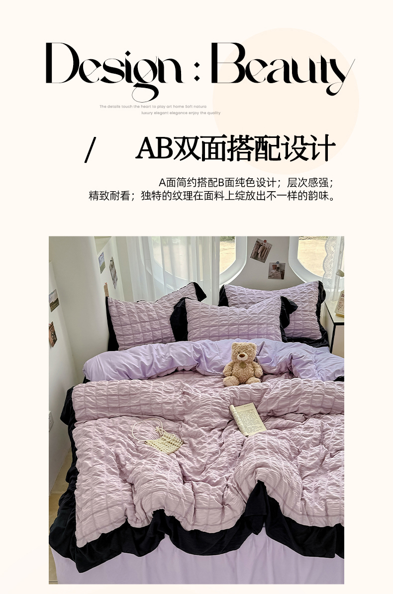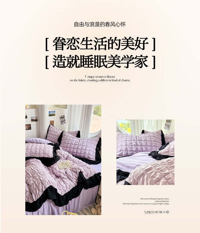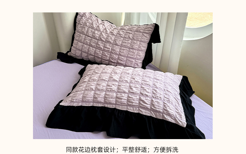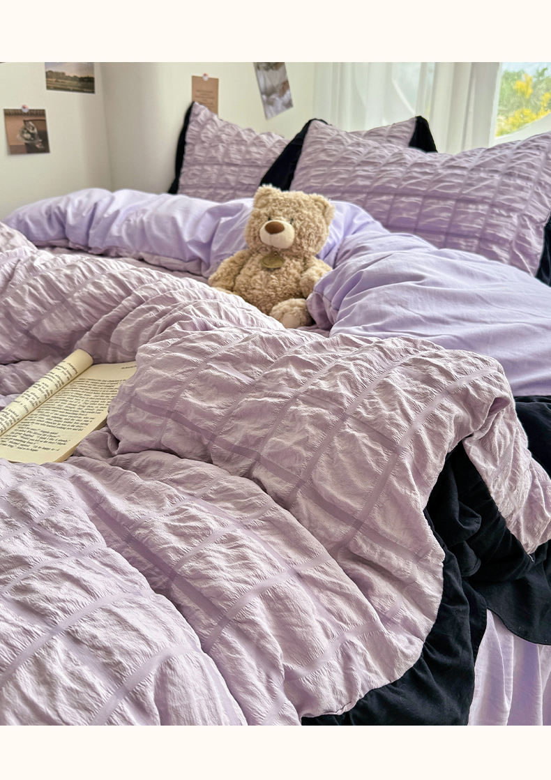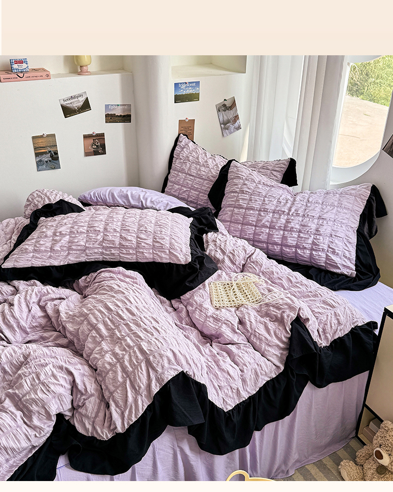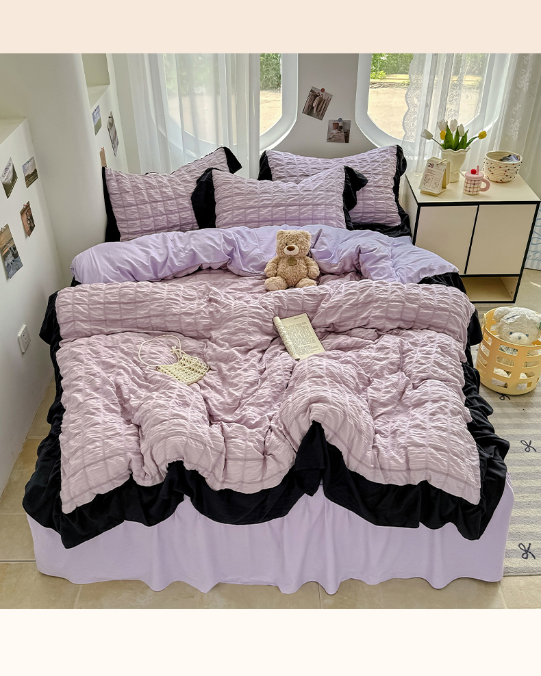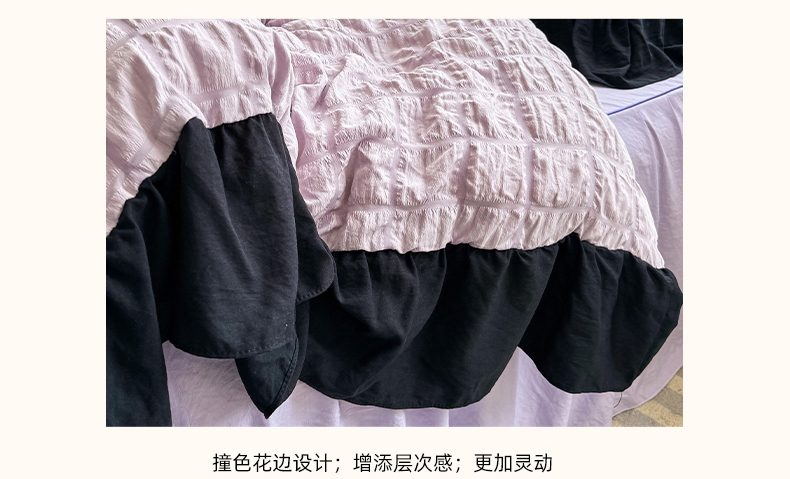 当前位置: 91家纺网 > 商品网购 > 床品套件 > 四件套 > 其它四件套 > 优卡迪家纺馆 2025新款亲肤舒适A类法式泡泡纱花边款四件套 香芋紫薯