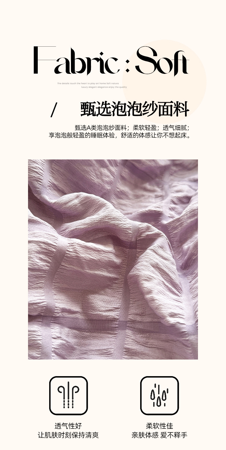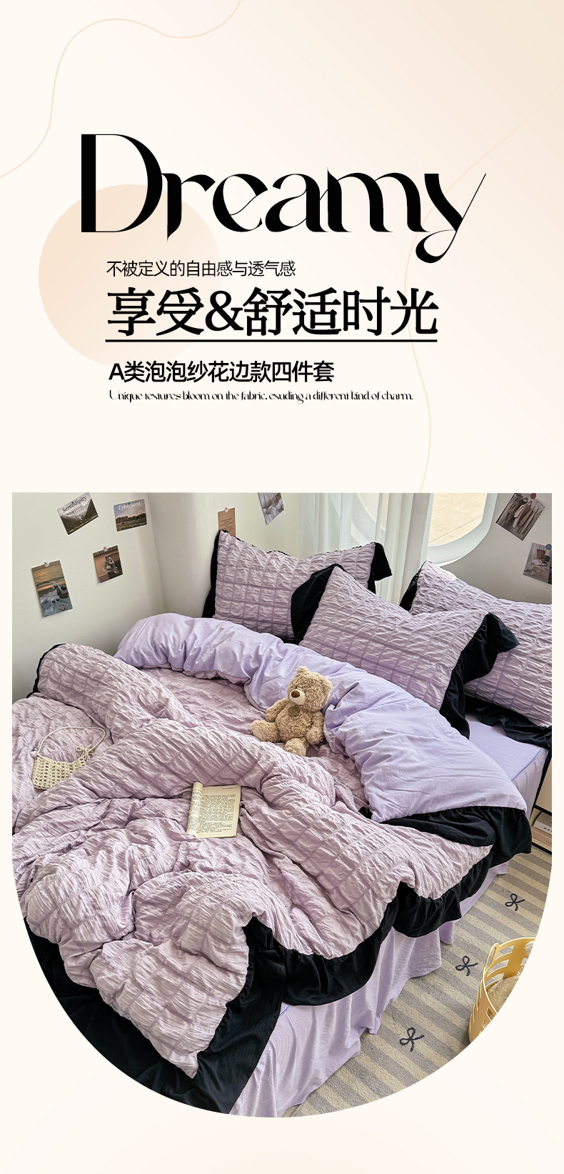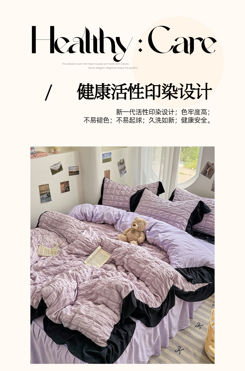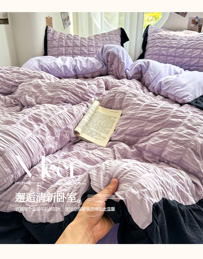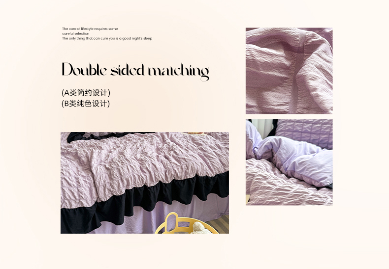 当前位置: 91家纺网 > 商品网购 > 床品套件 > 四件套 > 其它四件套 > 优卡迪家纺馆 2025新款亲肤舒适A类法式泡泡纱花边款四件套 香芋紫薯