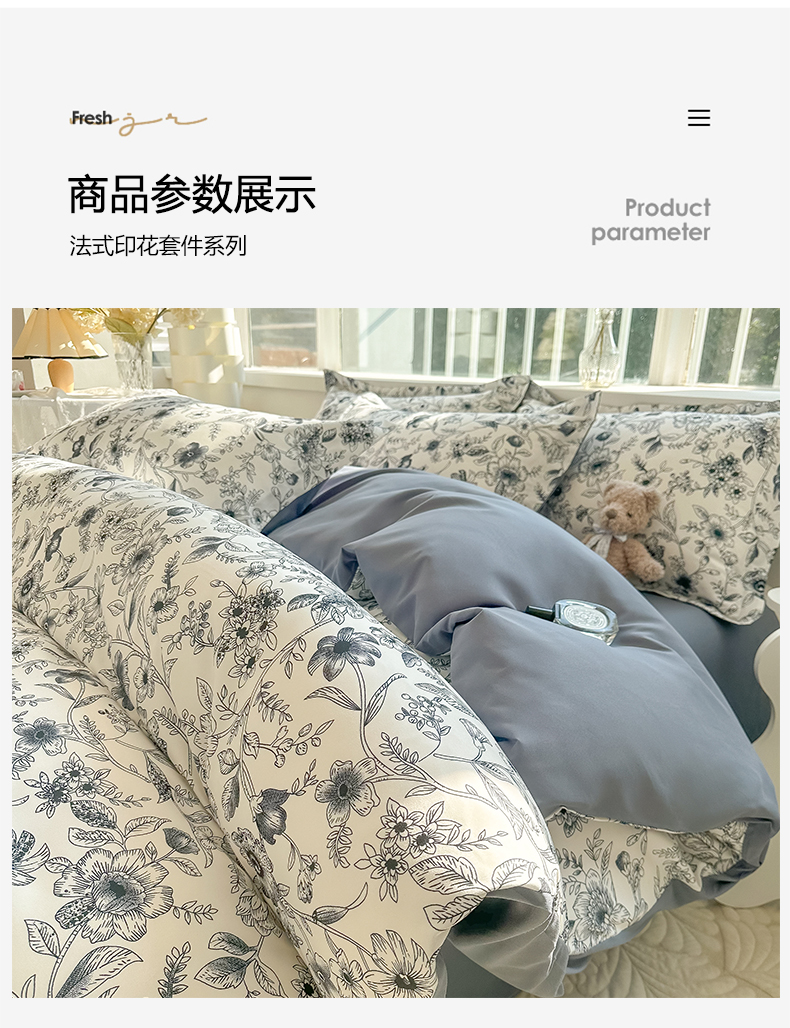 当前位置: 91家纺网 > 商品网购 > 床品套件 > 四件套 > 其它四件套 > 爱彼家纺 2025新款加厚法式印花四件套 法式永墨花园
