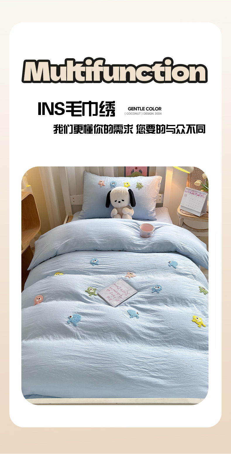 当前位置: 91家纺网 > 商品网购 > 床品套件 > 三件套 > 爱彼家纺 2025新款超柔水洗棉怪兽毛巾绣学生宿舍三件套上下铺三件套 怪兽-奶咖