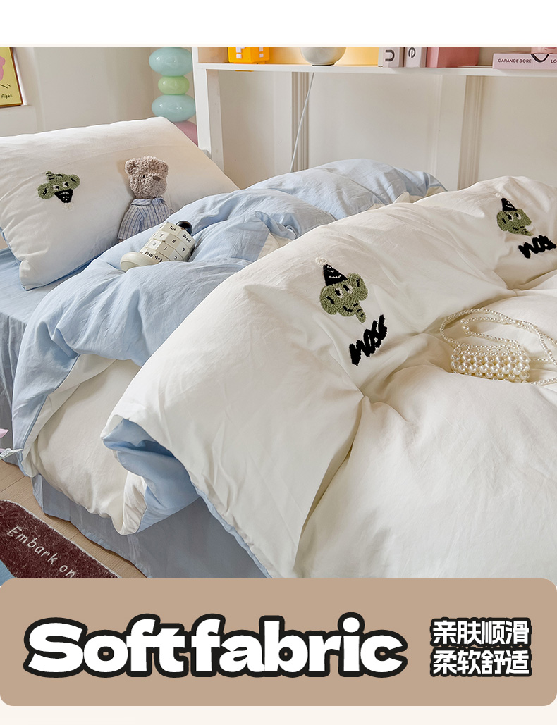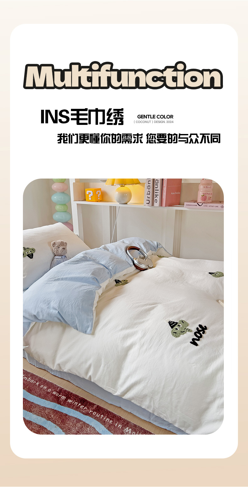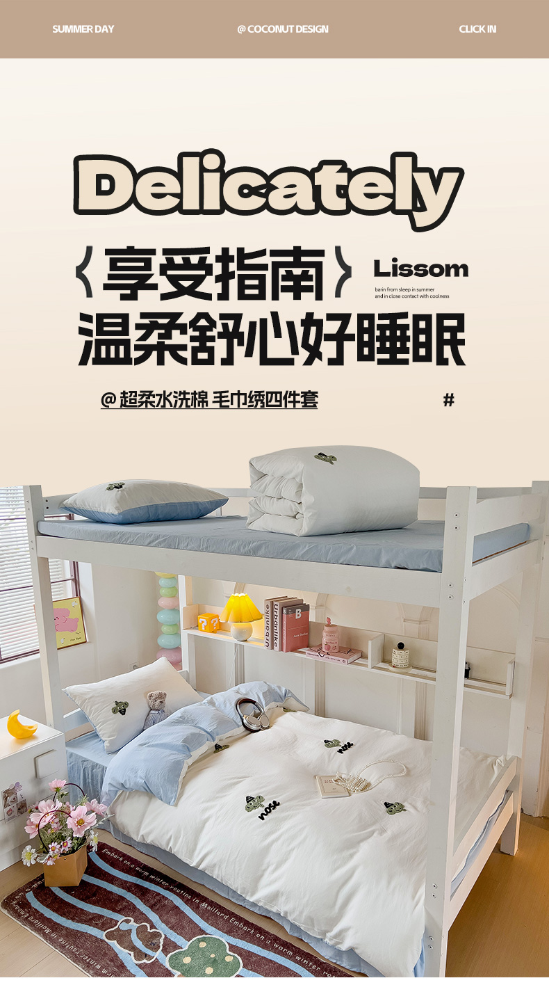 当前位置: 91家纺网 > 商品网购 > 床品套件 > 三件套 > 爱彼家纺 2025新款超柔水洗棉毛巾绣学生宿舍三件套上下铺三件套 奶白天空兰