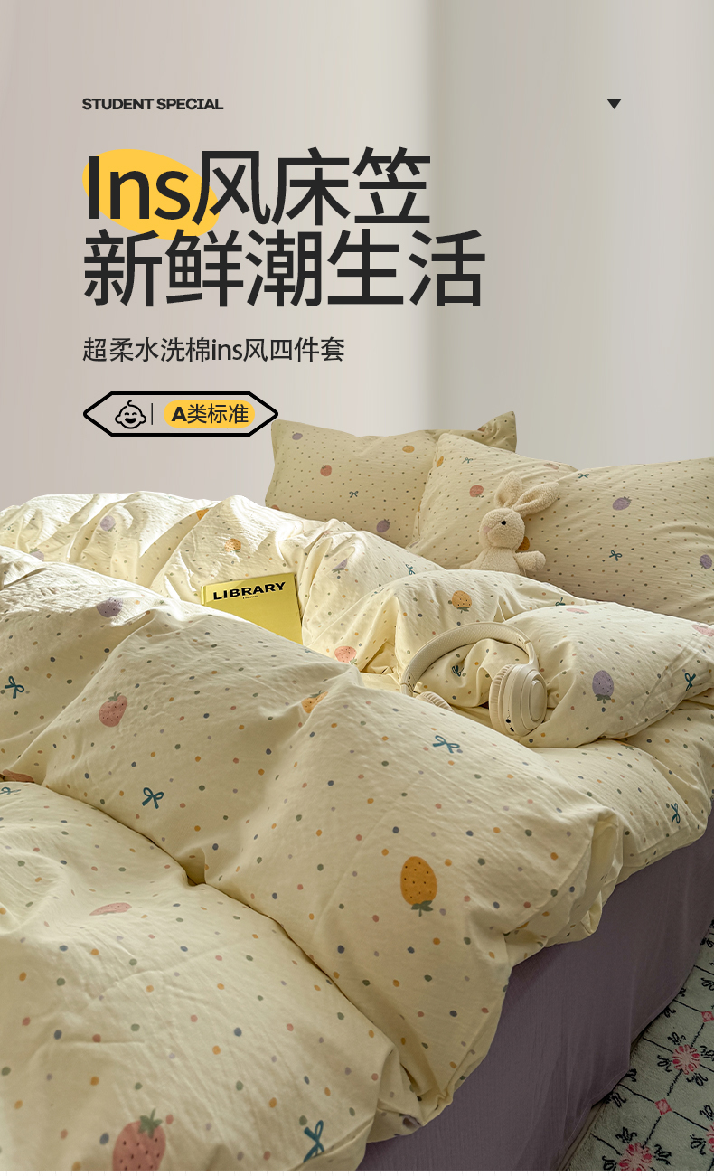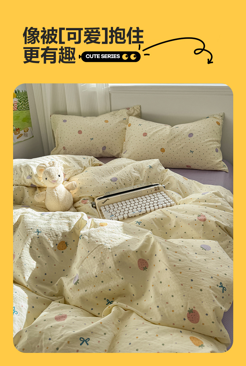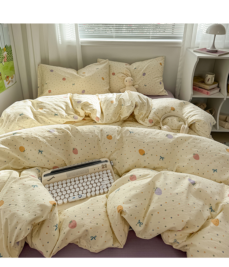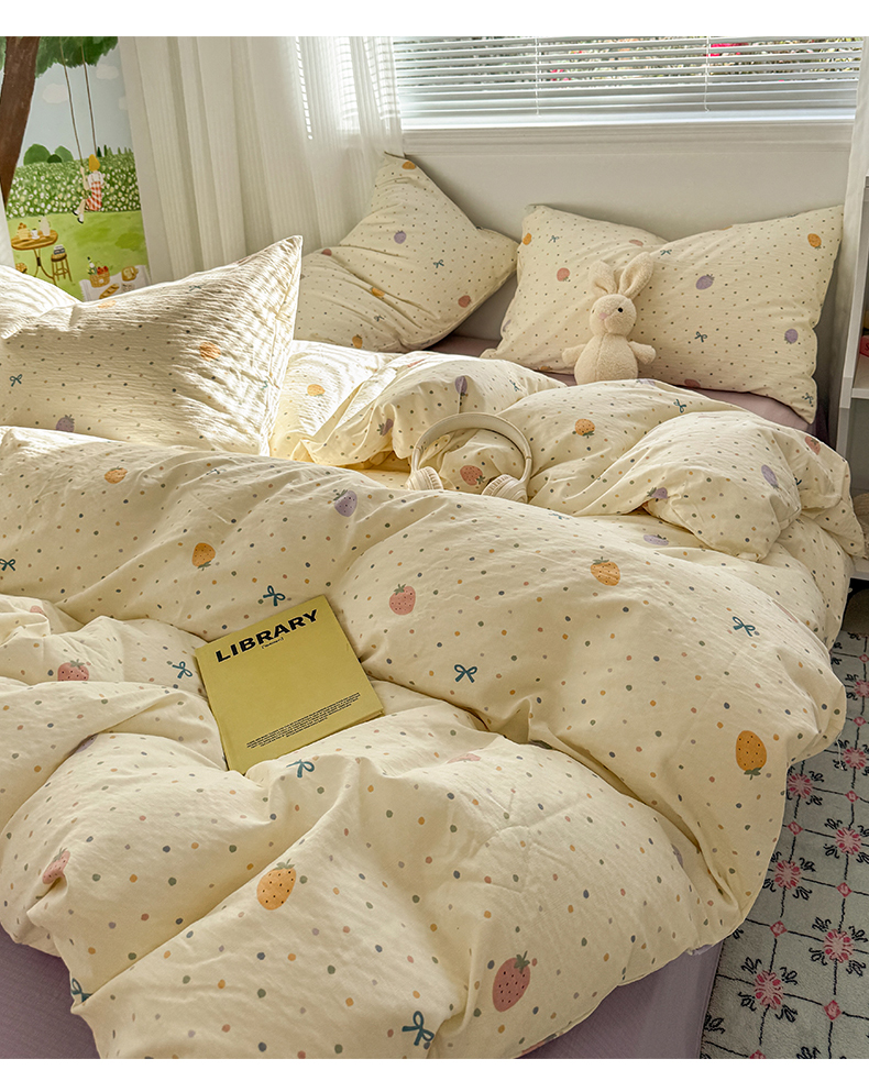 当前位置: 91家纺网 > 商品网购 > 床品套件 > 四件套 > 其它四件套 > 多品家纺 2025新款超柔云感双层纱四件套 五彩草莓