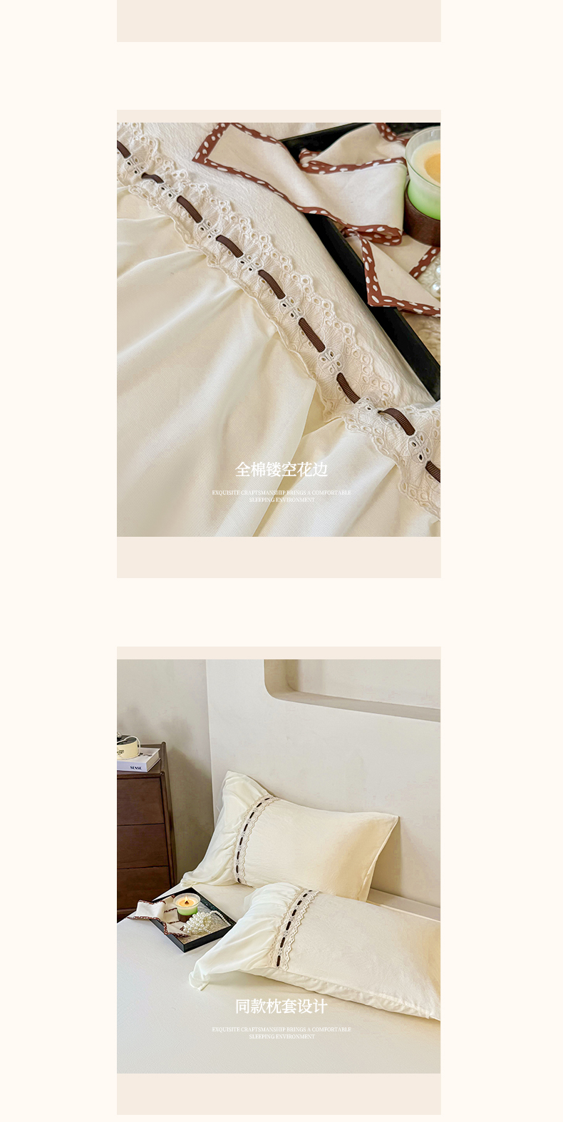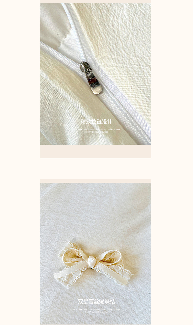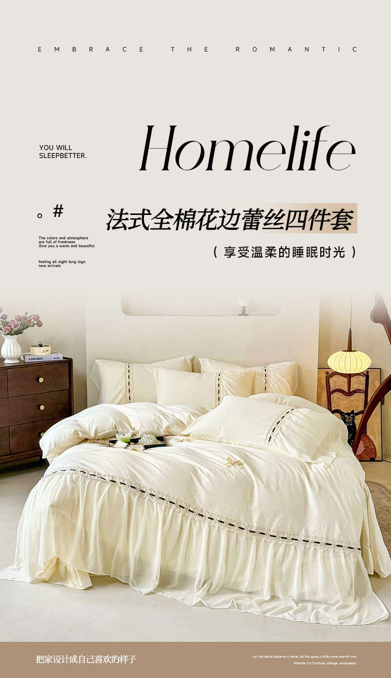 商品名称:庭笙 2025新款法式少女全棉镂空花边仙女梦幻纱蕾丝边四件套-清甜少女 清甜少女-米白