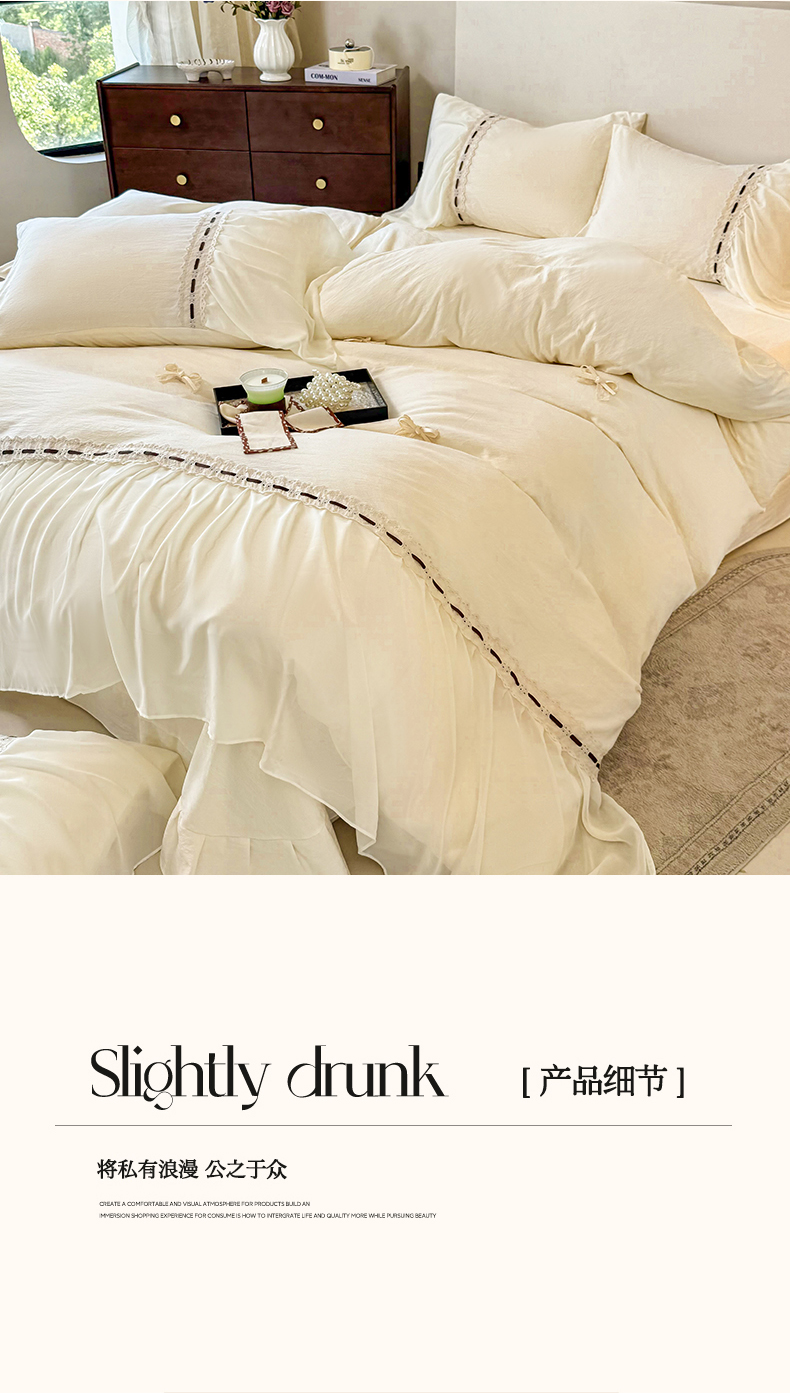 (总)庭笙 2025新款仙女小清新褶皱裙边少女背带公主裙摆法式梦幻纱蕾丝四件套,公主裙摆-米白,公主裙摆-浅粉