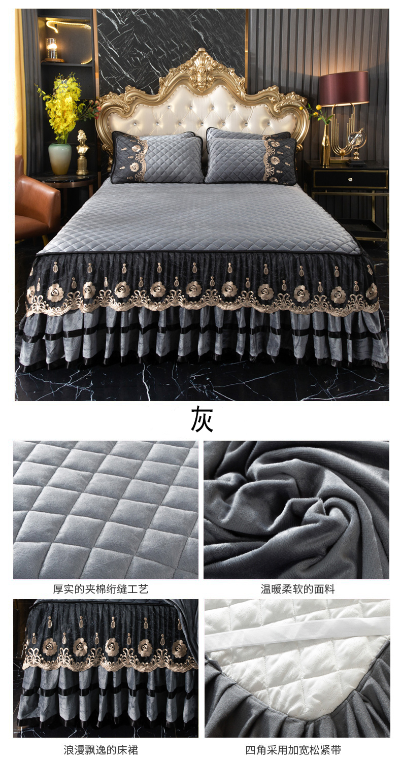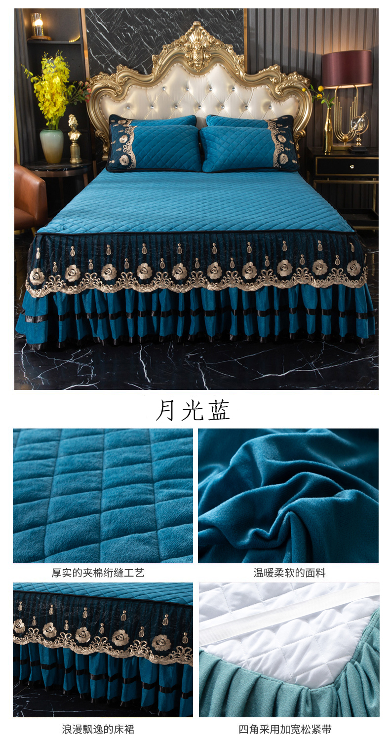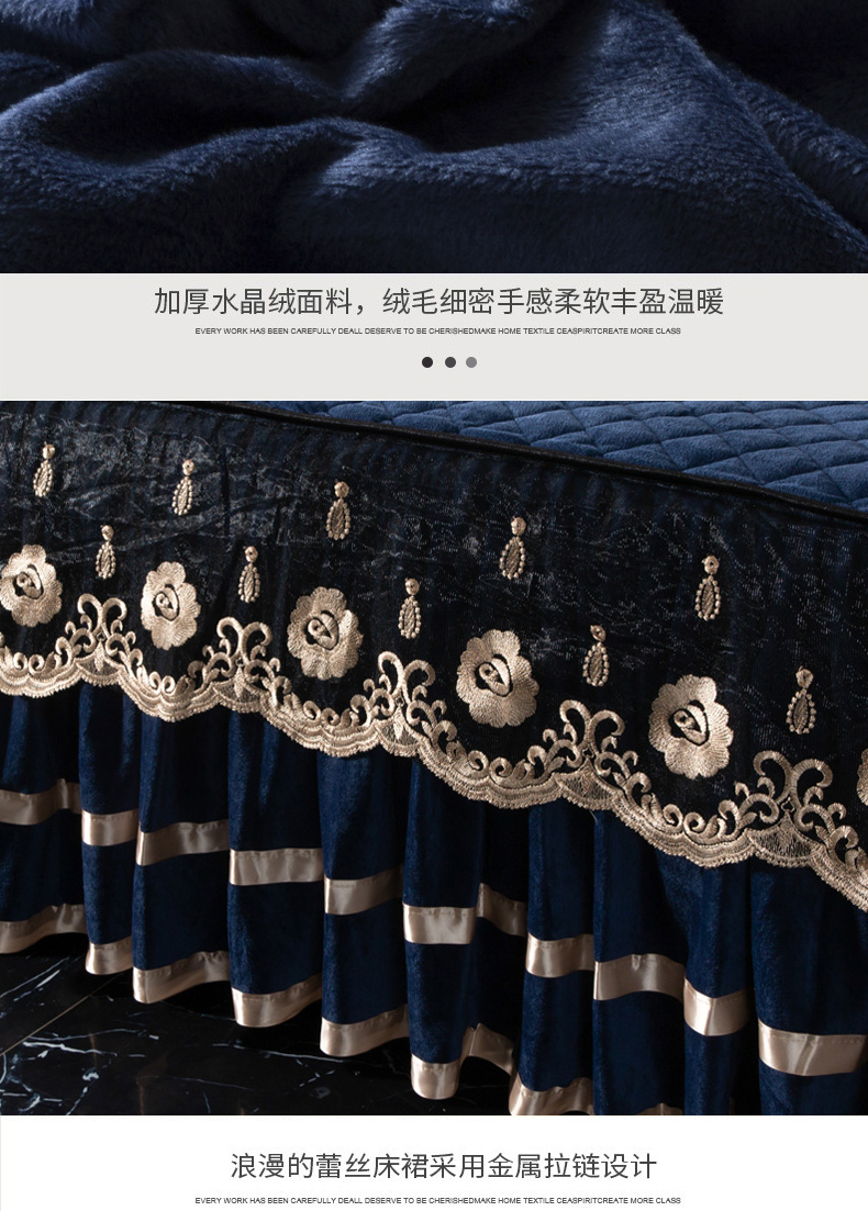 当前位置: 91家纺网 > 商品网购 > 床品套件 > 四件套 > 水晶绒四件套 > 能好家纺 2025新款蕾丝工艺水晶绒夹棉床裙 粉玉