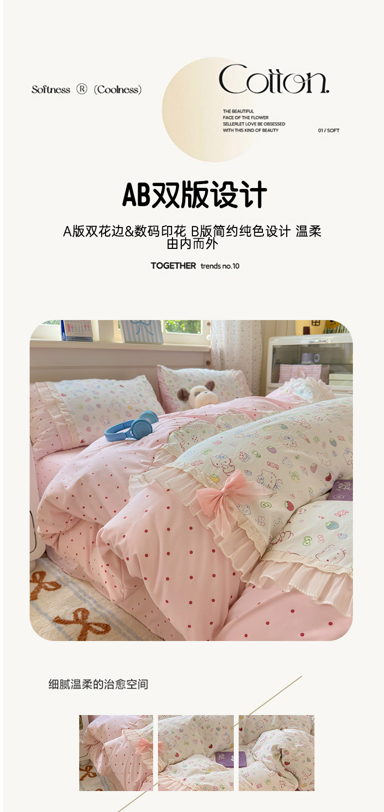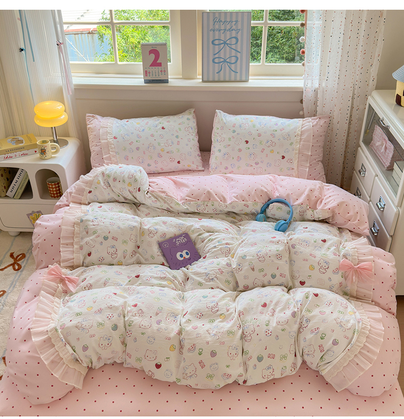 商品名称:一霖家纺 2025新款高克重云朵棉韩系小清新蝴蝶结四件套 少女KT