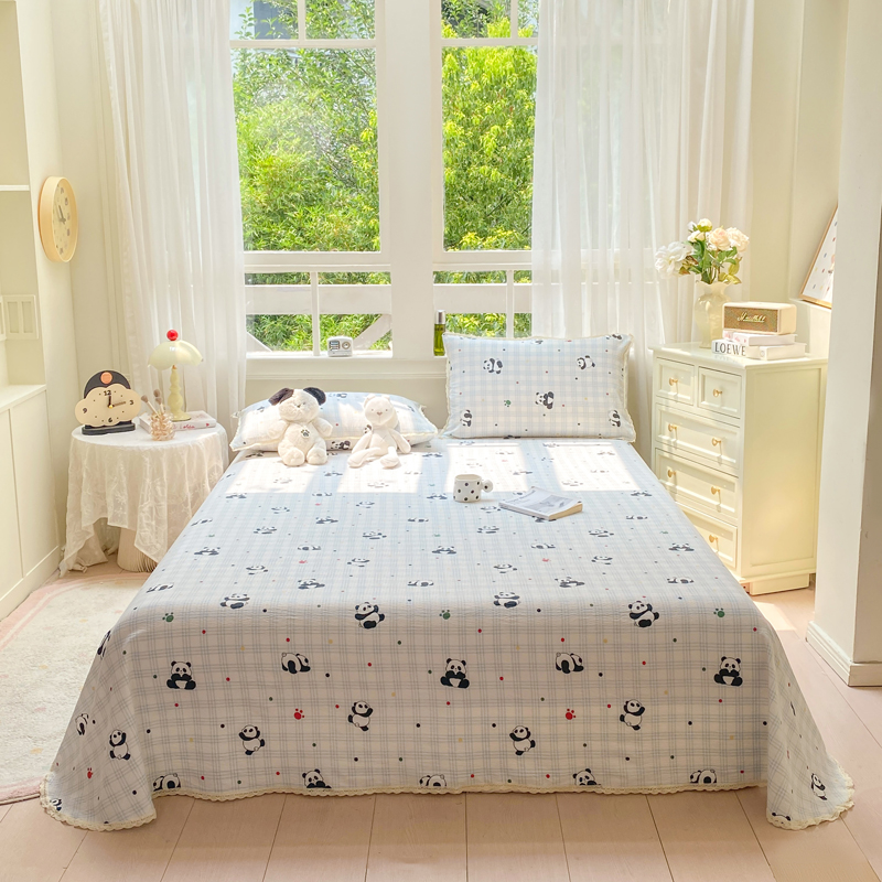 • 91家纺网 家纺一手货源 找家纺 欧尚 2025新款云感双层纱针织棉印花母婴级超柔裸睡级床单三件套 薄巧