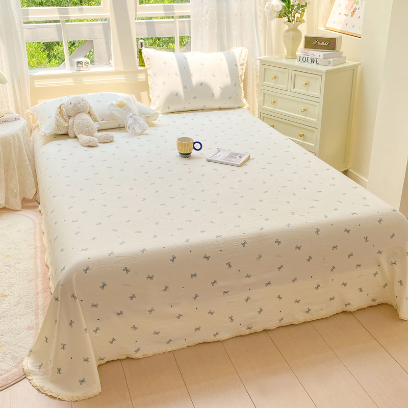 欧尚 2025新款云感双层纱针织棉印花母婴级超柔裸睡级床单三件套 薄巧
