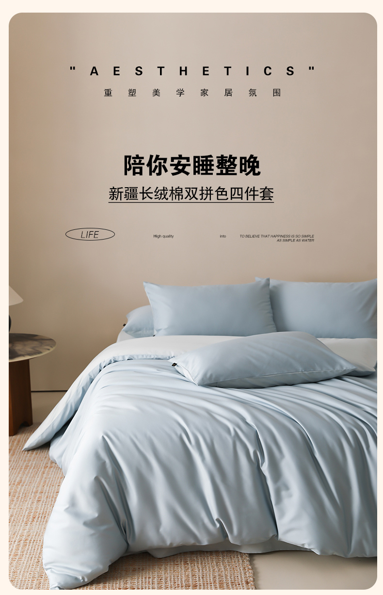 当前位置: 91家纺网 > 商品网购 > 床品套件 > 四件套 > 全棉普通四件套 > 云栖家居 2025新款全棉纯棉纯色双拼色长绒棉纯棉四件套--极简 希腊蓝&浅云兰