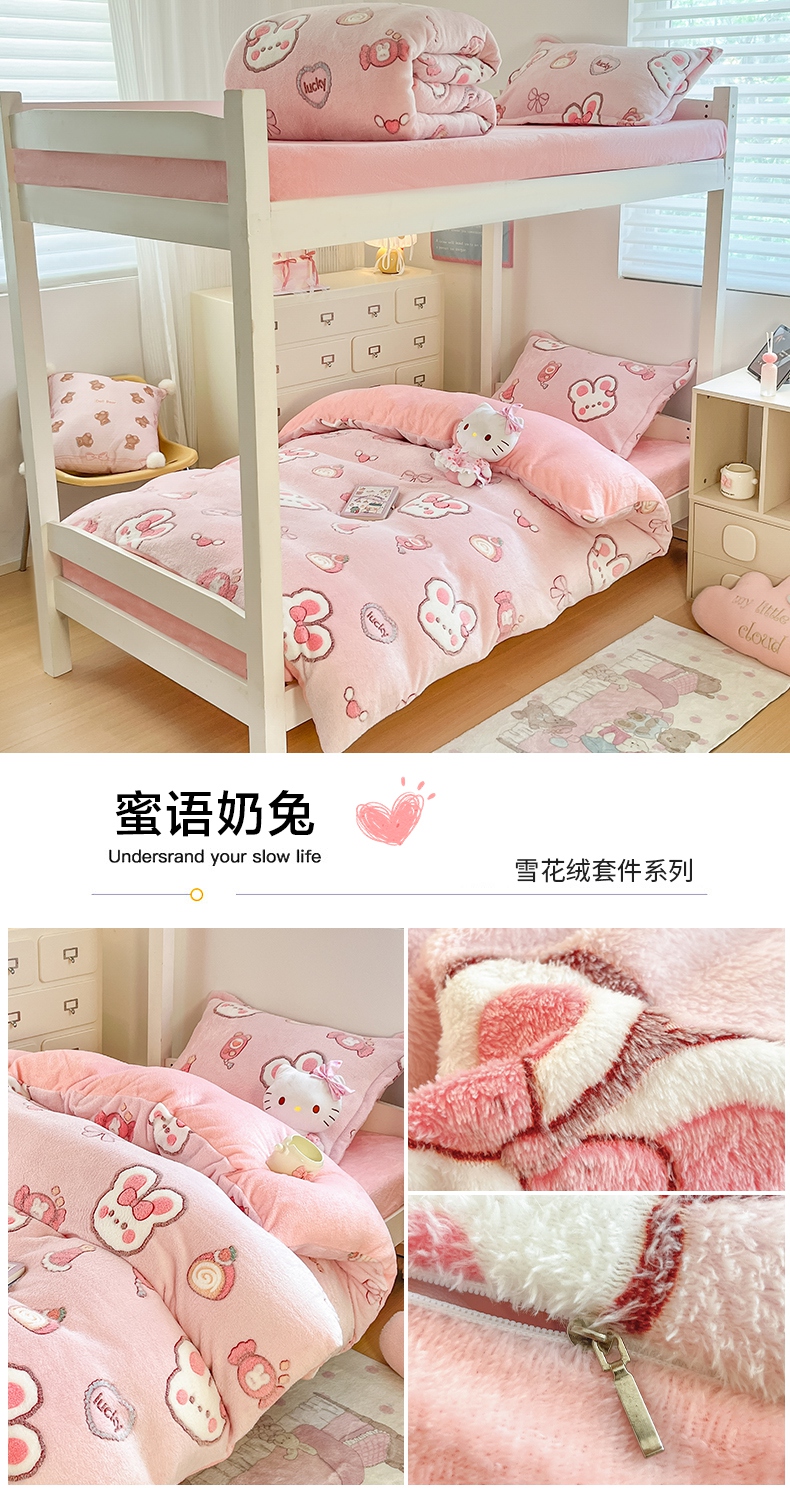当前位置: 91家纺网 > 商品网购 > 床品套件 > 四件套 > 其它四件套 > 川悦生活 2025新款立体雪花绒印花四件套学生床系列一场景一 桃心爱语