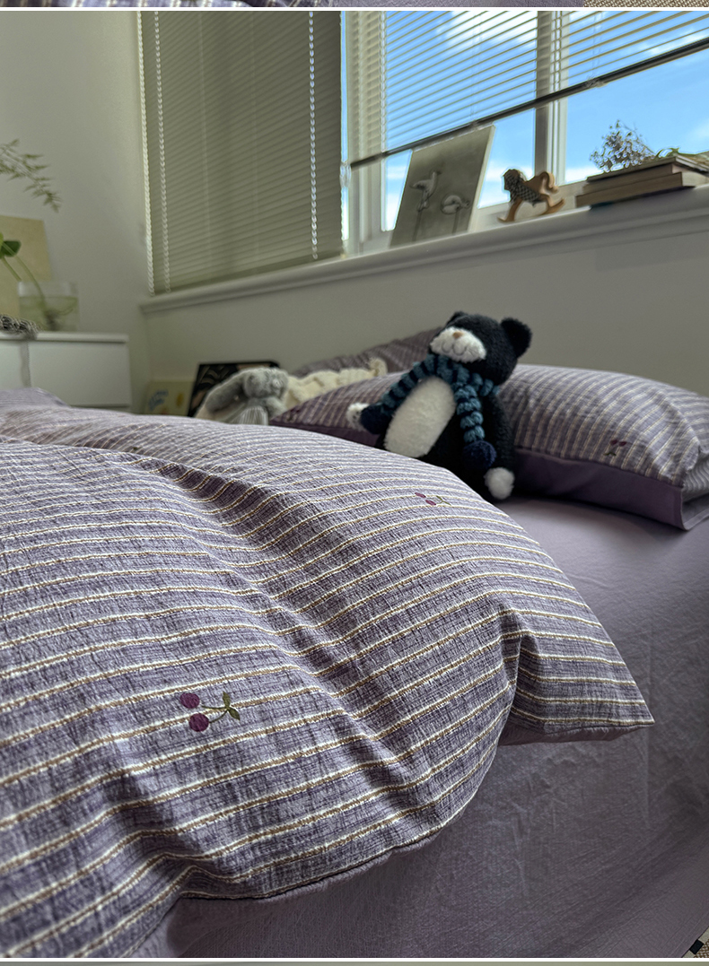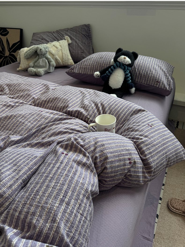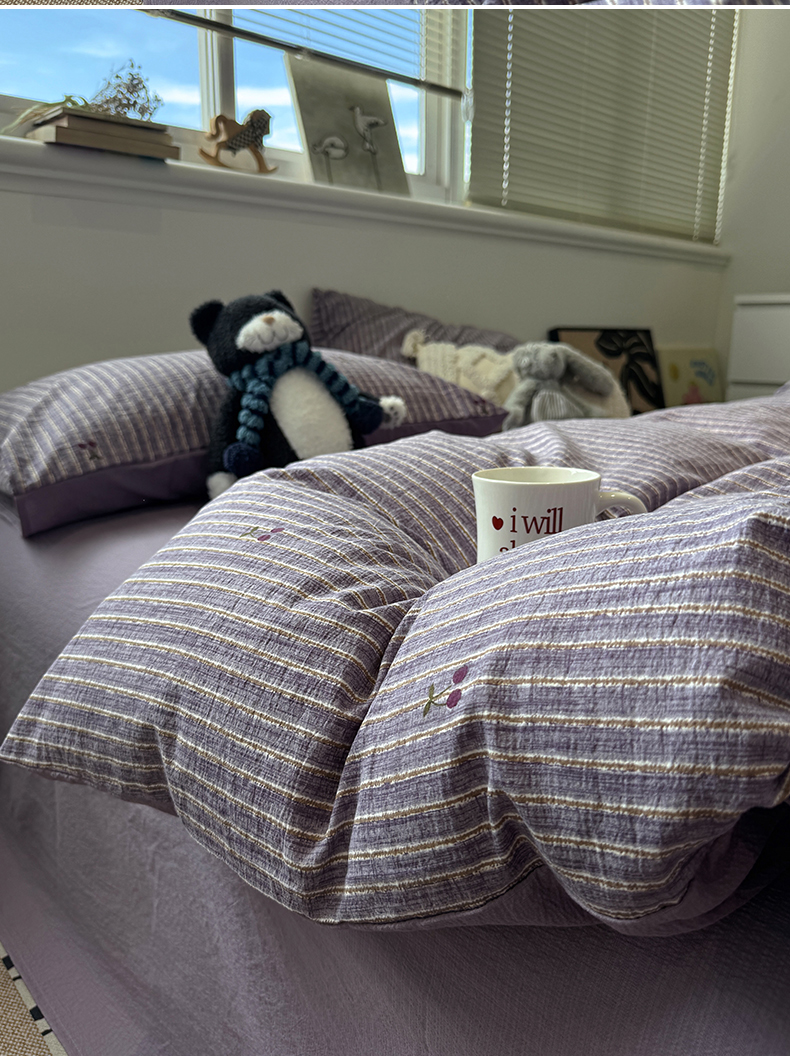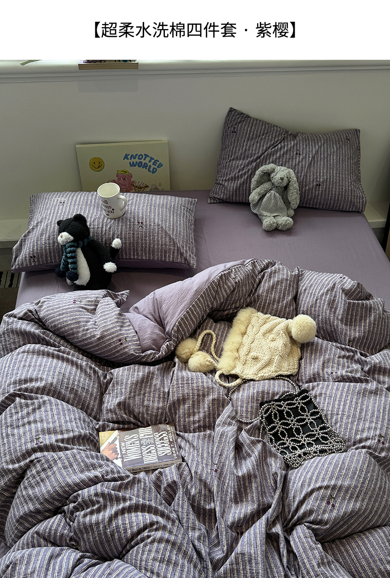 当前位置: 91家纺网 > 商品网购 > 床品套件 > 四件套 > 其它四件套 > 水墨江南 2025新款高克重云感双层纱印花四件套-场景二 紫樱