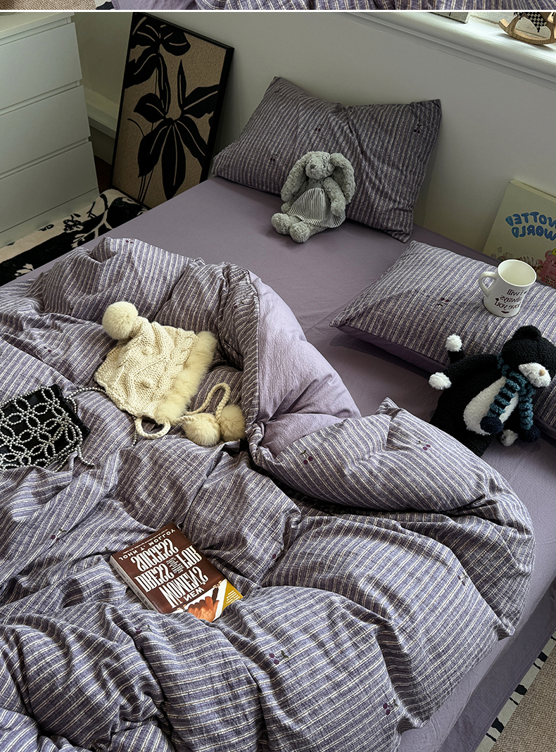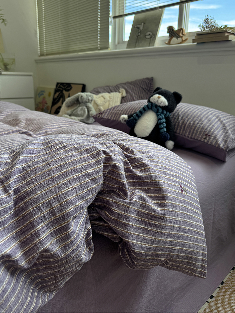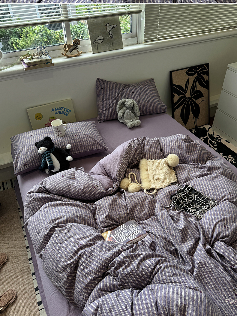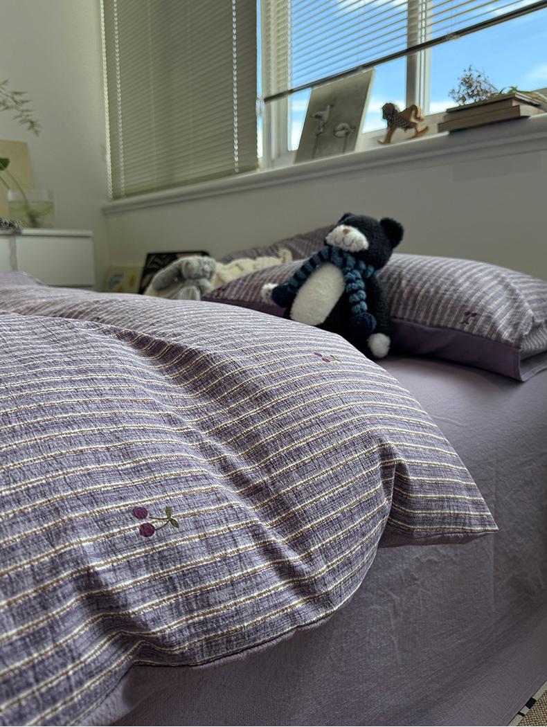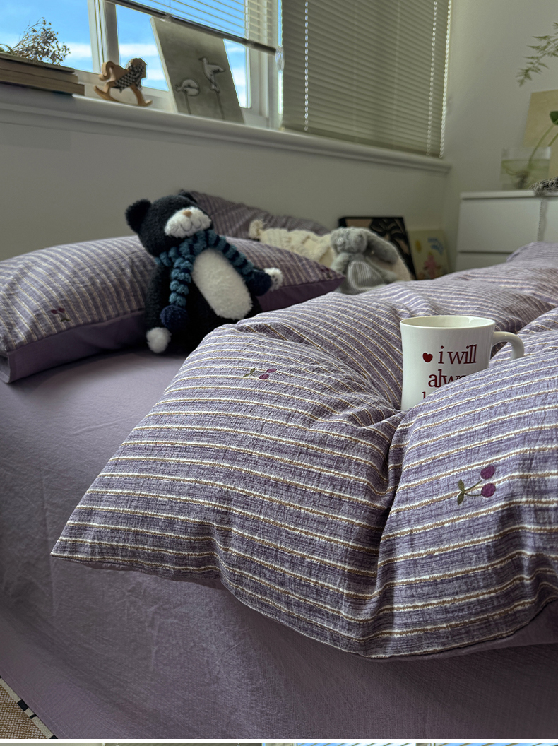 当前位置: 91家纺网 > 商品网购 > 床品套件 > 四件套 > 其它四件套 > 水墨江南 2025新款高克重云感双层纱印花四件套-场景二 紫樱