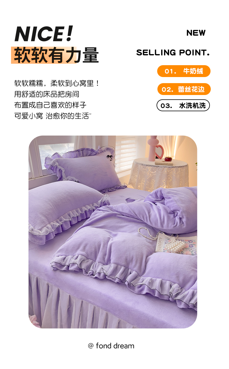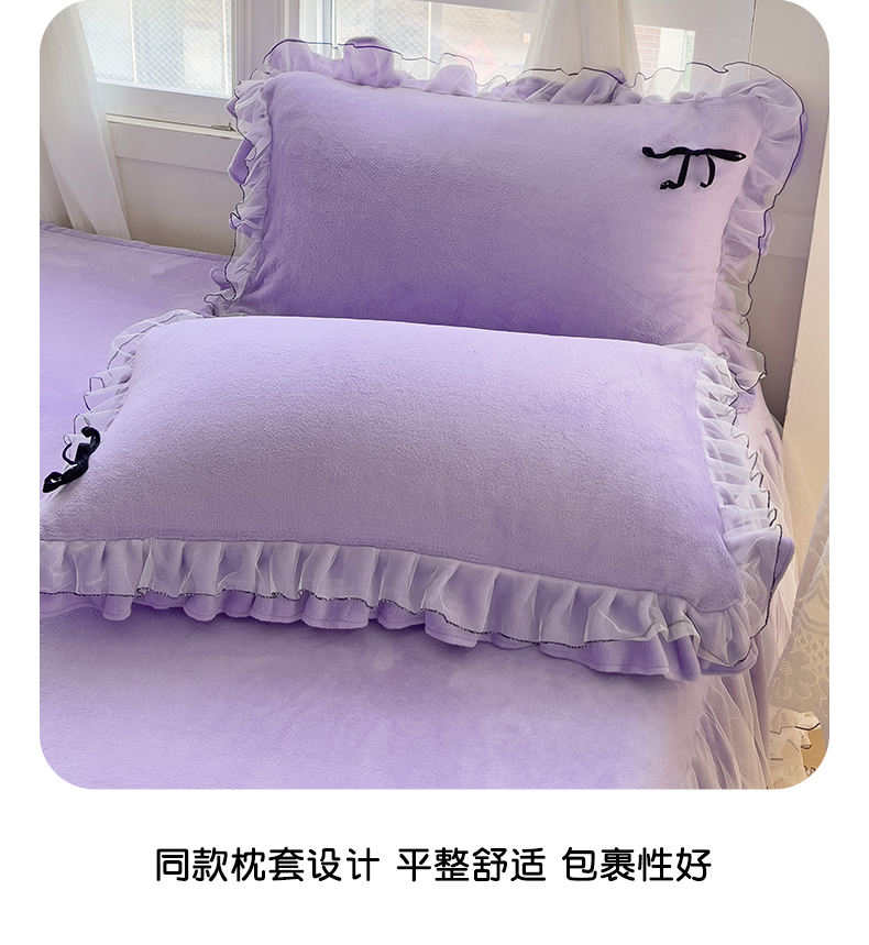 商品名称:言熙居家纺 2025新款仙气网纱蕾丝花边蝴蝶结牛奶绒四件套 仙女紫