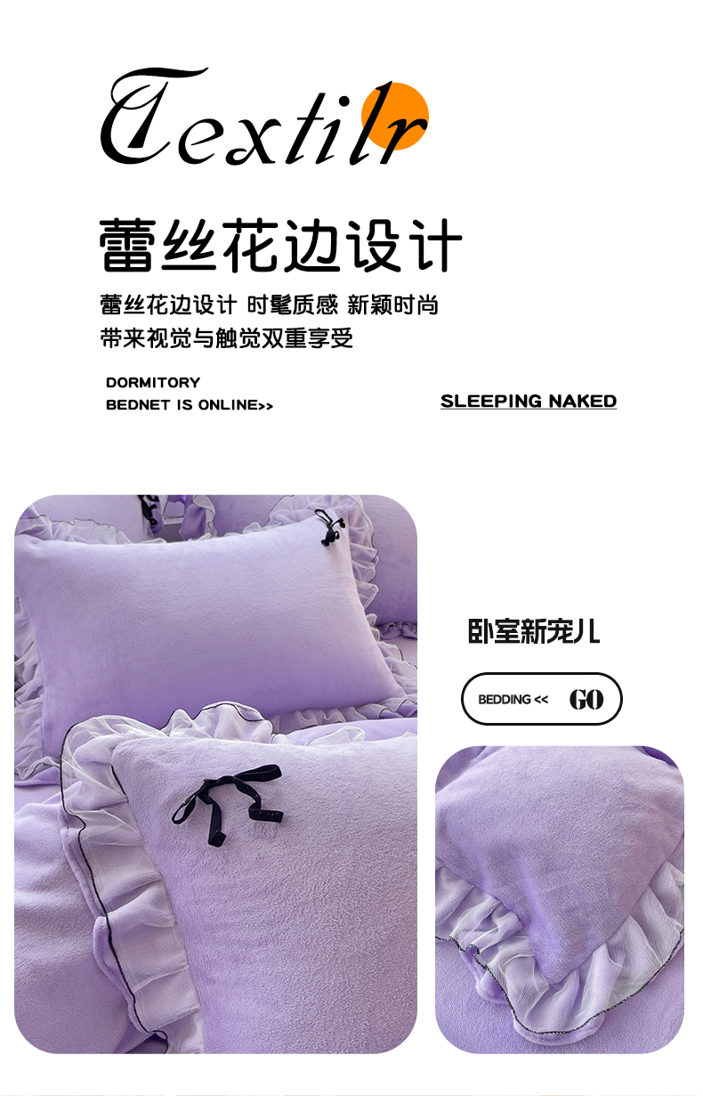 (总)言熙居家纺 2025新款A类兔毛绒韩版卡通花边四件套,蝴蝶结,幻蝶,墨枝,休闲一刻,映春,花眠