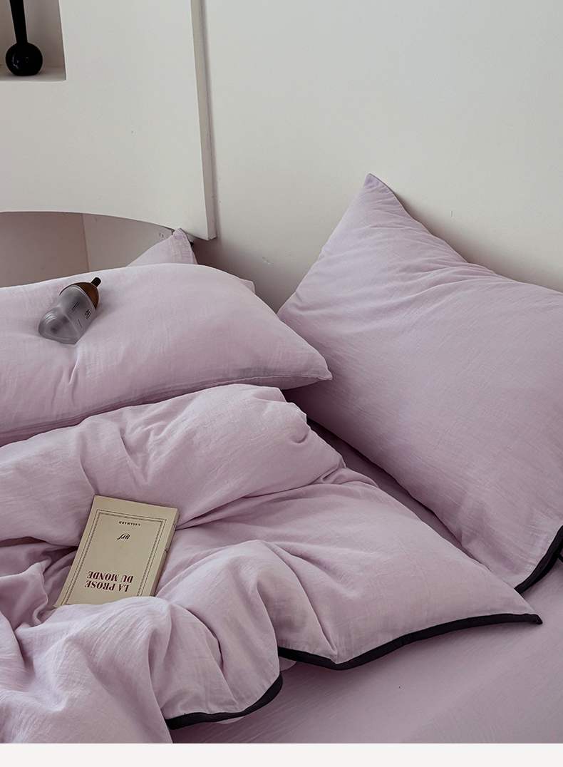 FORTWO家纺原创设计(FOR TWO家纺) 2025新款40支双层纱撞色包边蝴蝶结款单被套-海盐 海盐-樱落紫