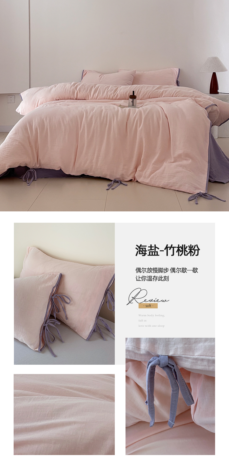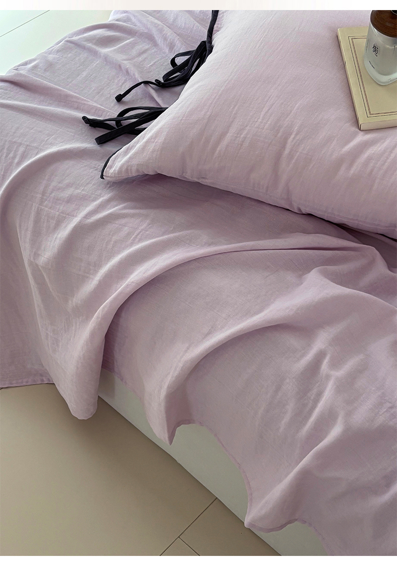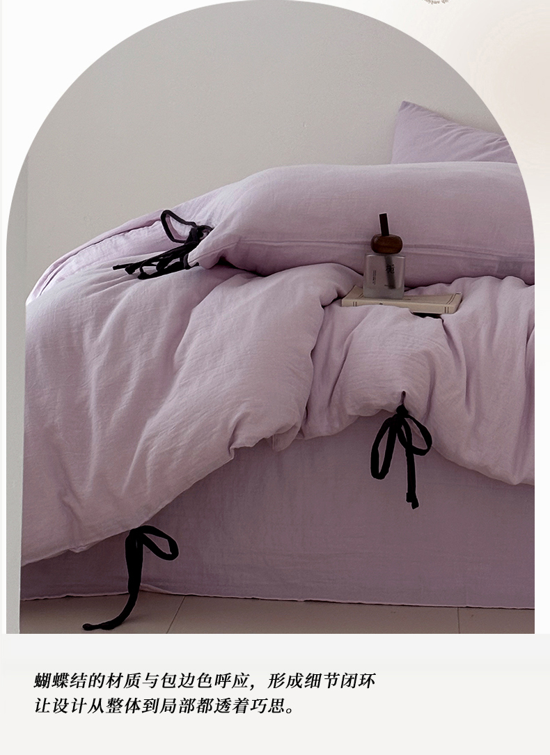 床上用品 > 被套 > FORTWO家纺原创设计(FOR TWO家纺) 2025新款40支双层纱撞色包边蝴蝶结款单被套-海盐 海盐-樱落紫