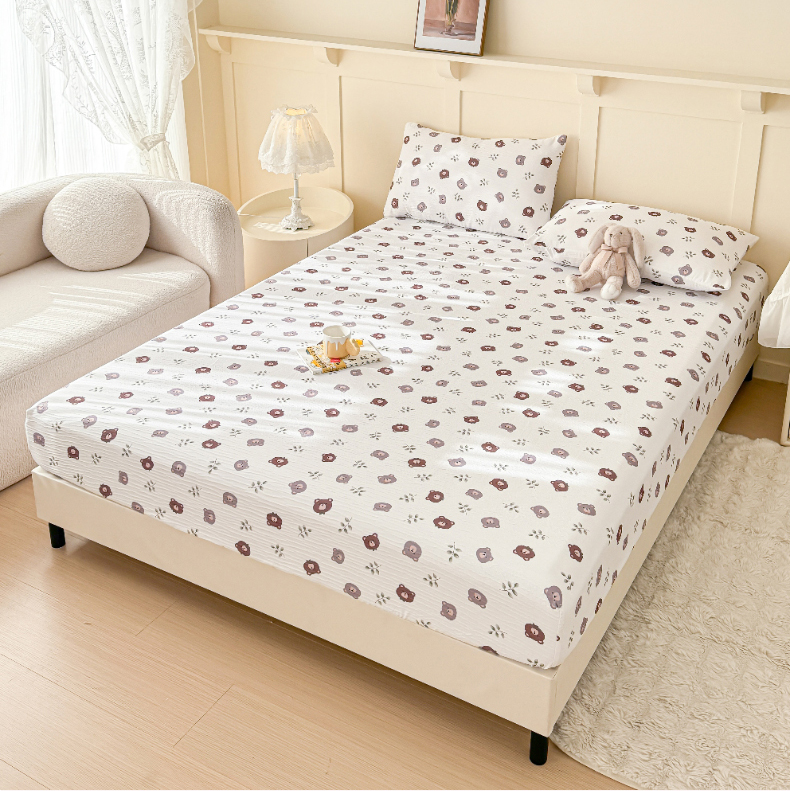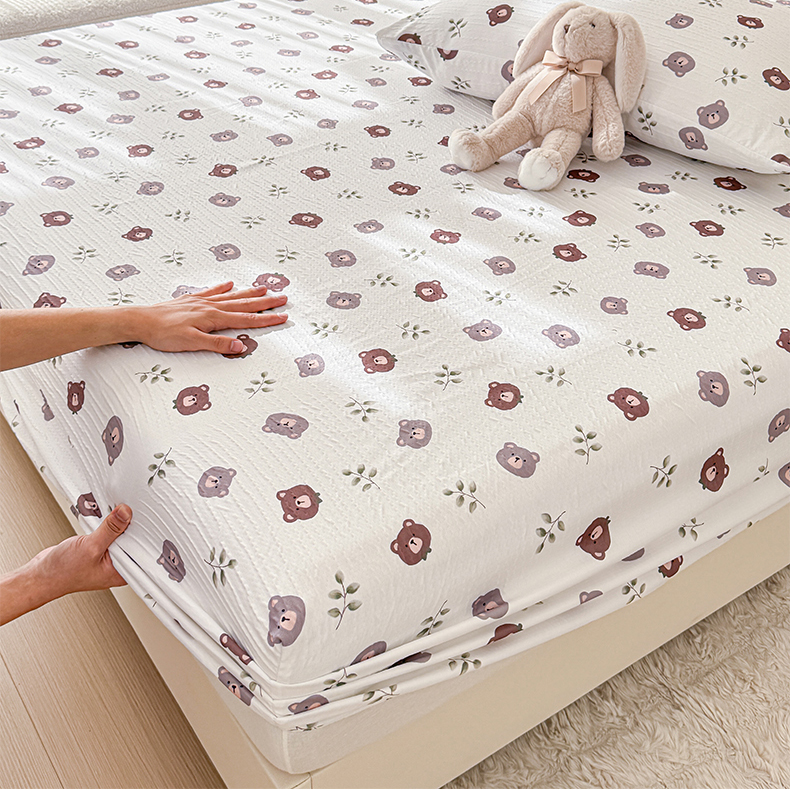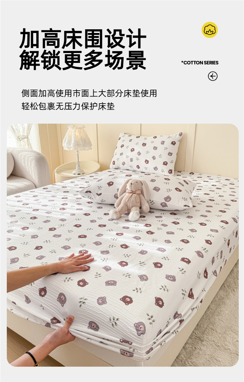 (总)小萌虎2025新款双层纱皱皱棉床笠