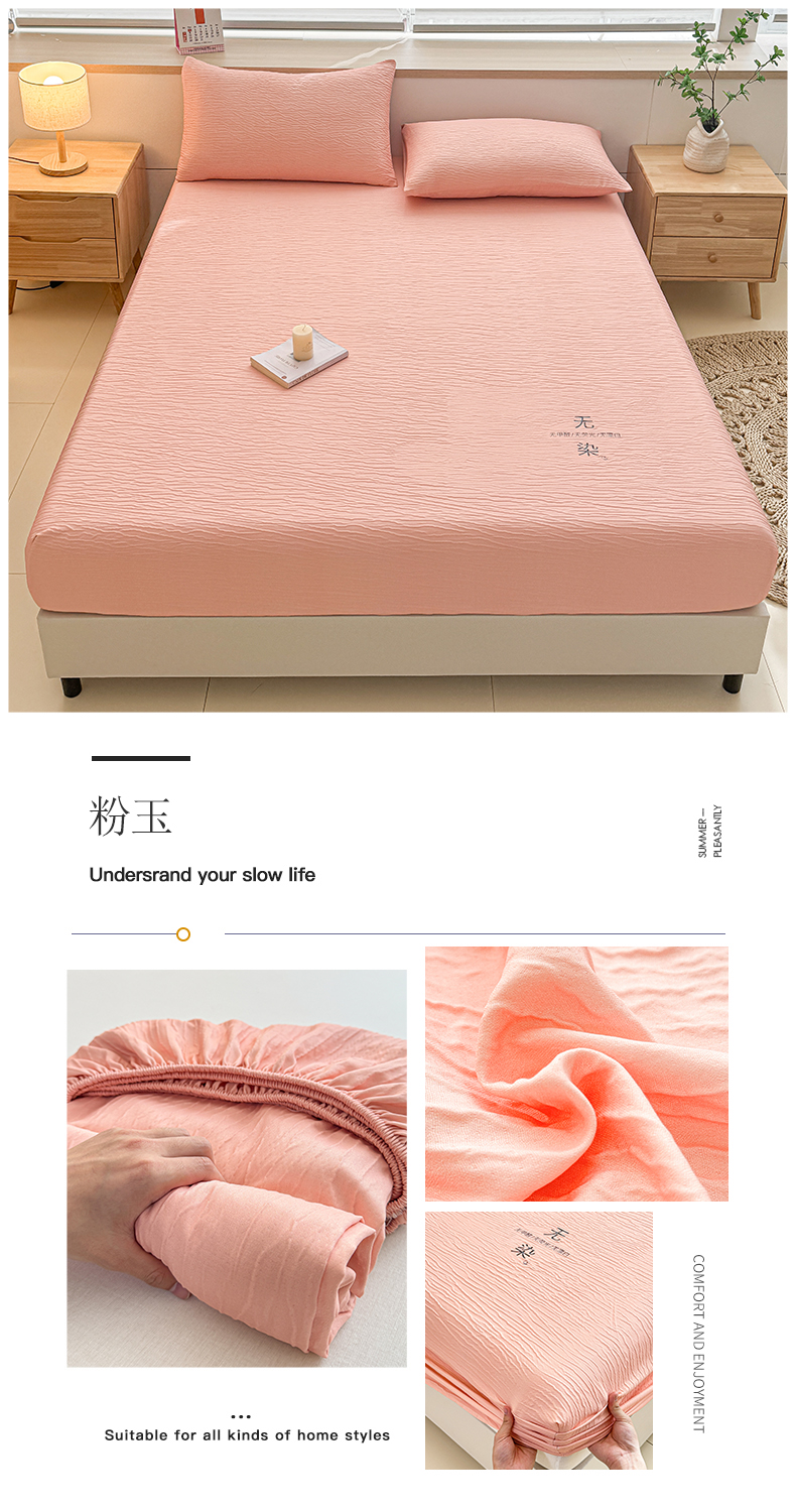 小萌虎2025新款双层纱皱皱棉床笠 粉玉