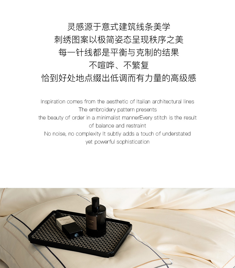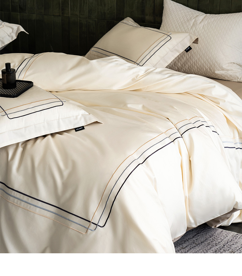 商品名称:卡姿家纺 2025秋冬60支长绒棉意式轻奢刺绣四件套-菲克 菲克奶油白