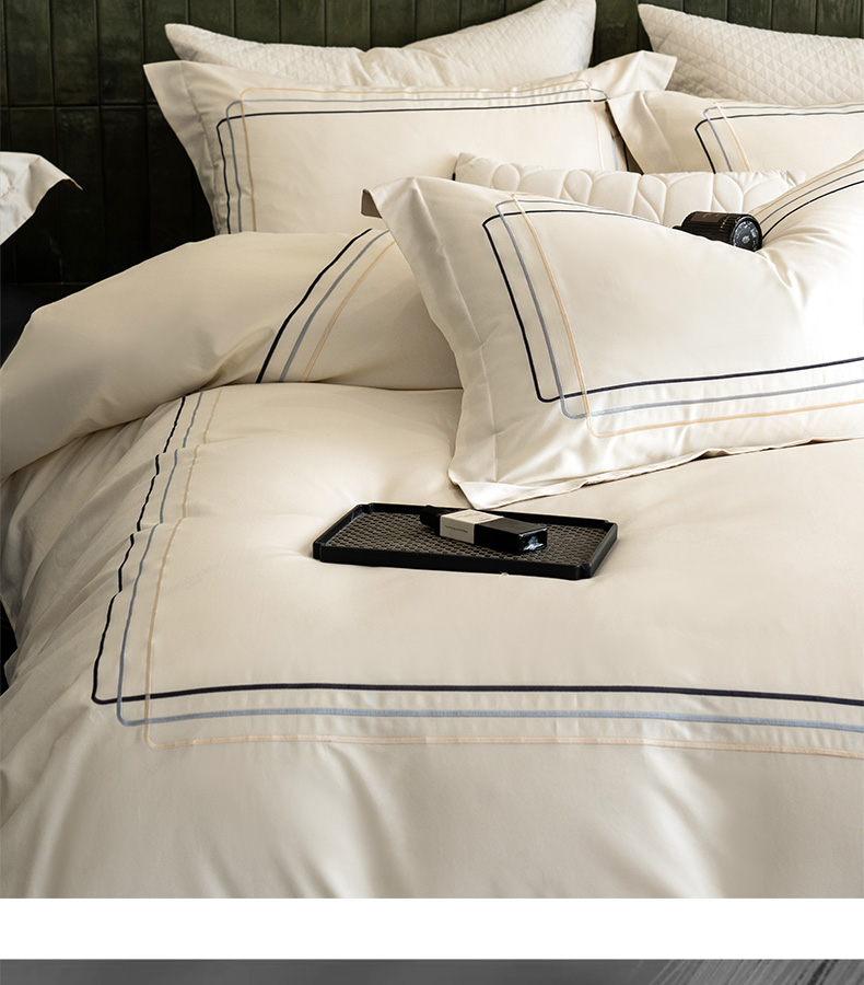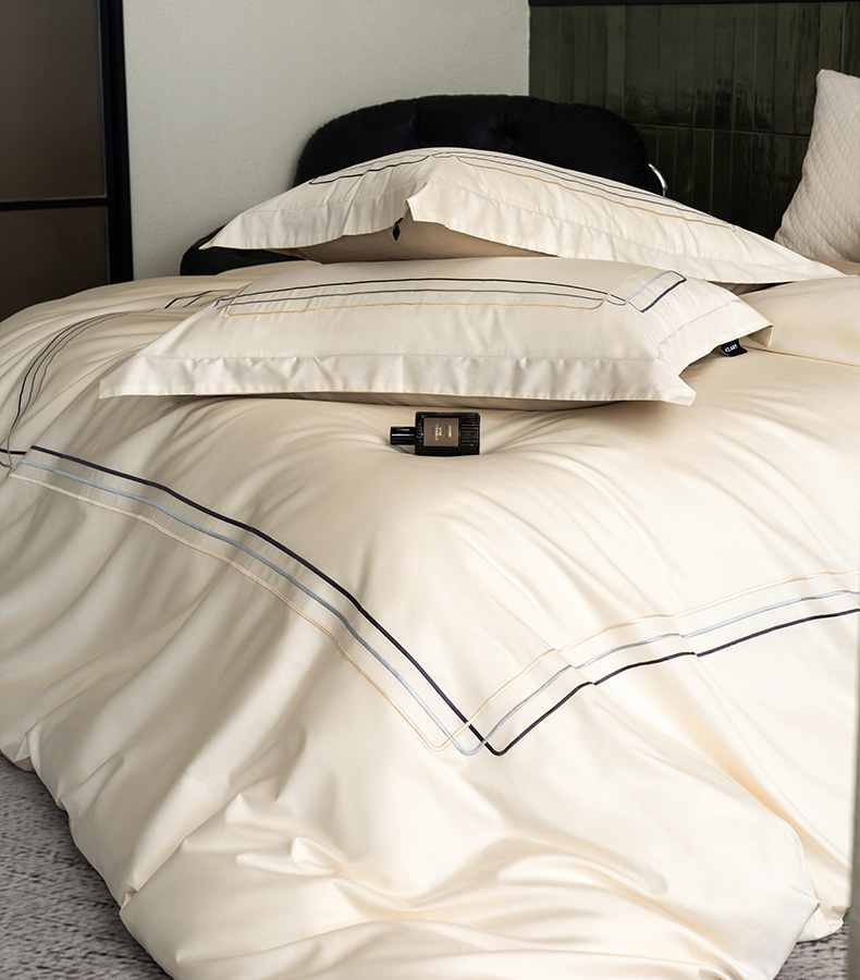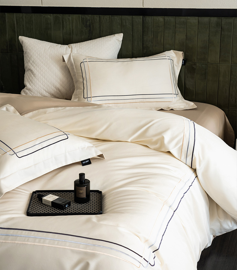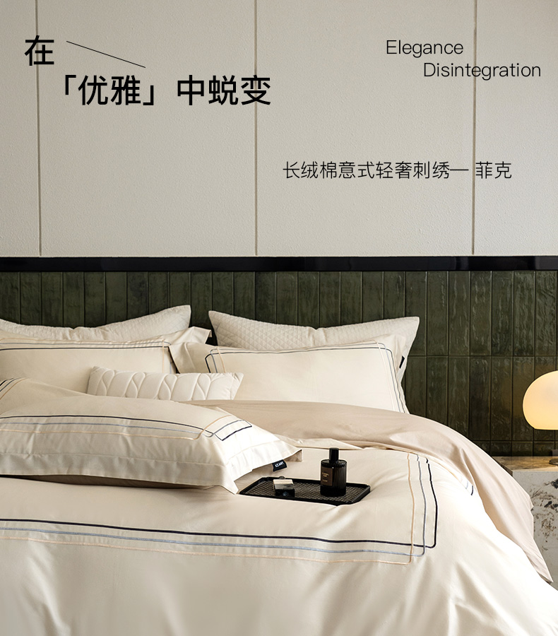卡姿家纺 2025秋冬60支长绒棉意式轻奢刺绣四件套-菲克 菲克奶油白