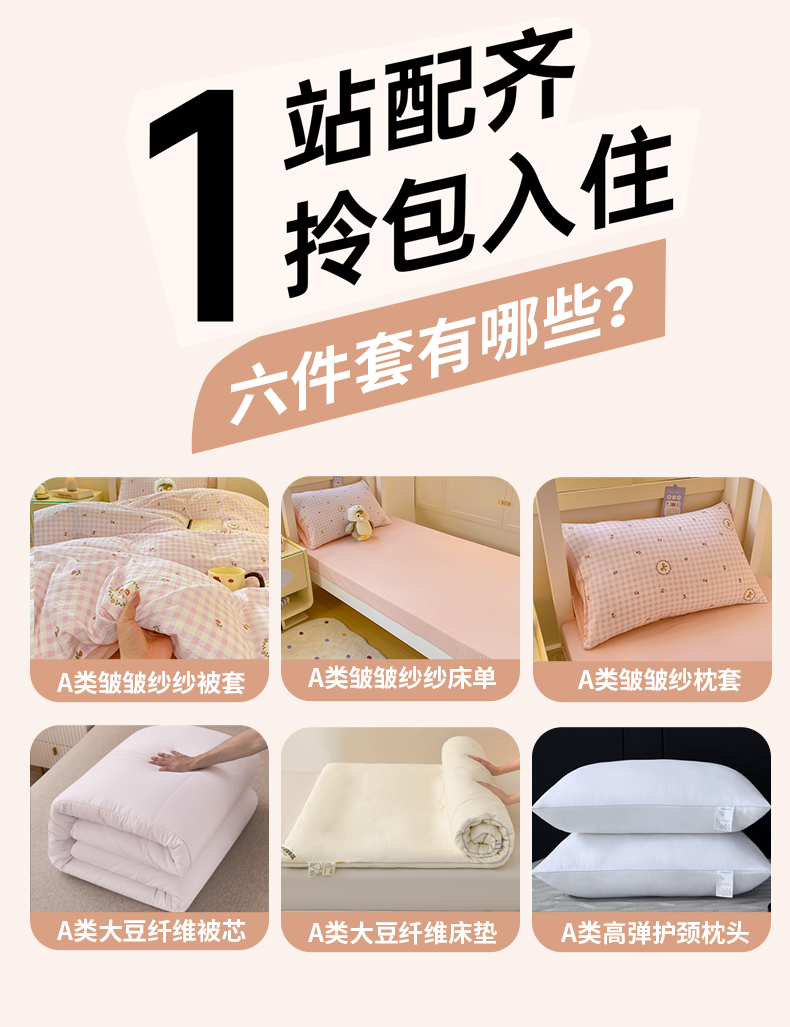 【床单款】1.2六件套-被套150x200(1.2三件套+枕芯+4斤羽丝绒被+5cm床垫) | ¥135.00 |
