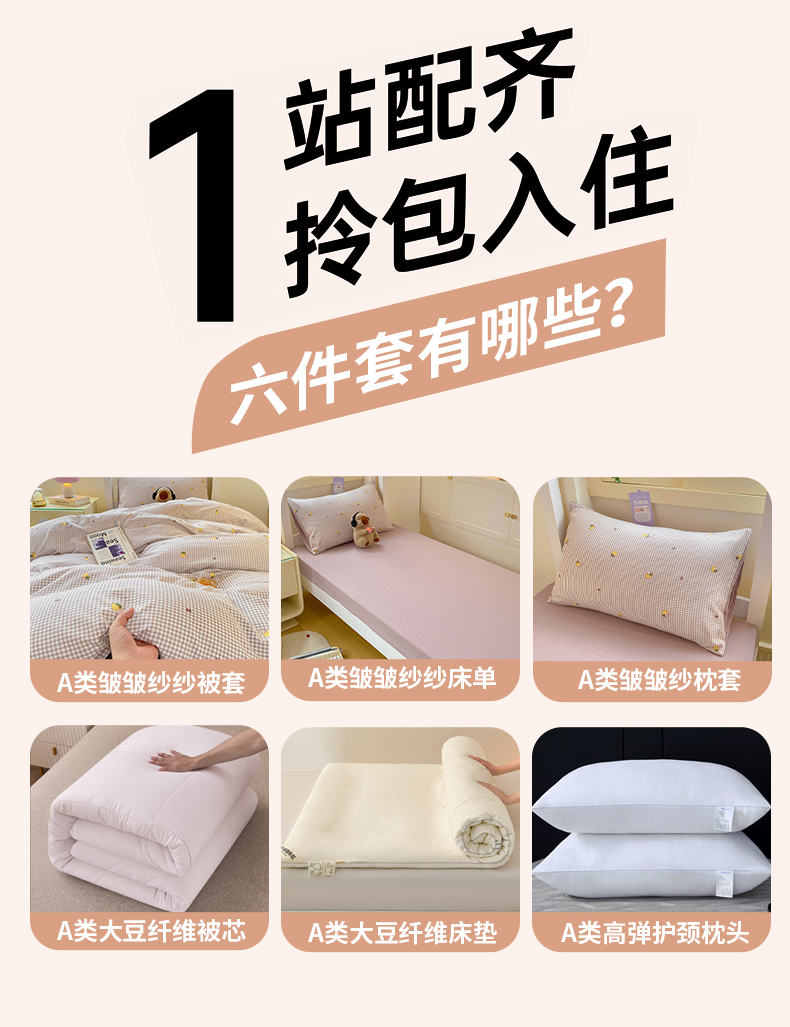 当前位置: 91家纺网 > 商品网购 > 床品套件 > 六件套 > 丽美人家纺 2025新款A类皱皱纱学生宿舍三件套上下铺三件套六件套 套件组合图仅供展示不可下单