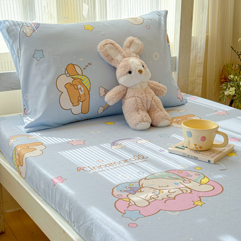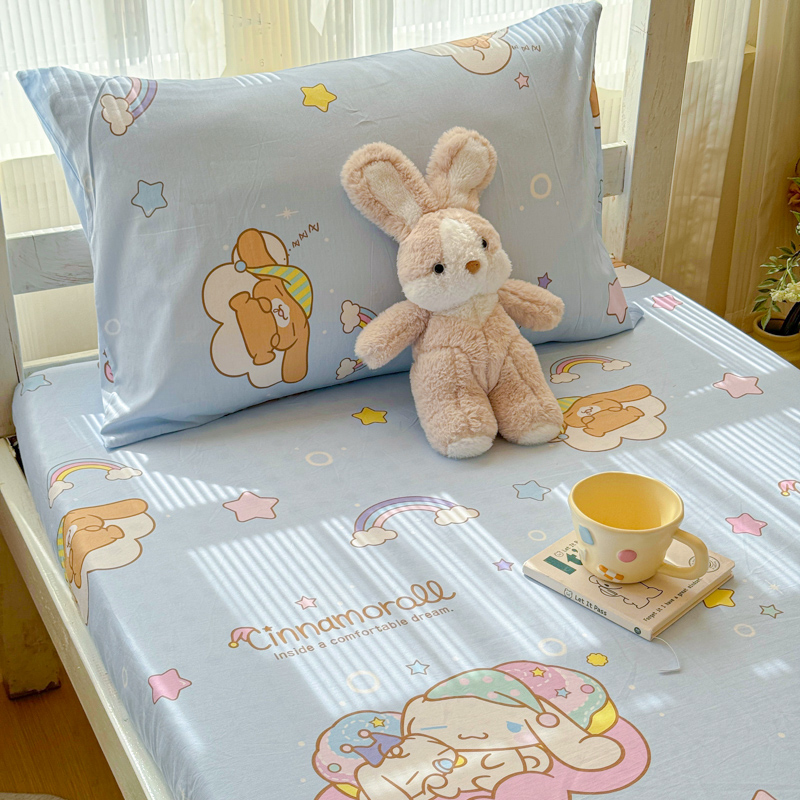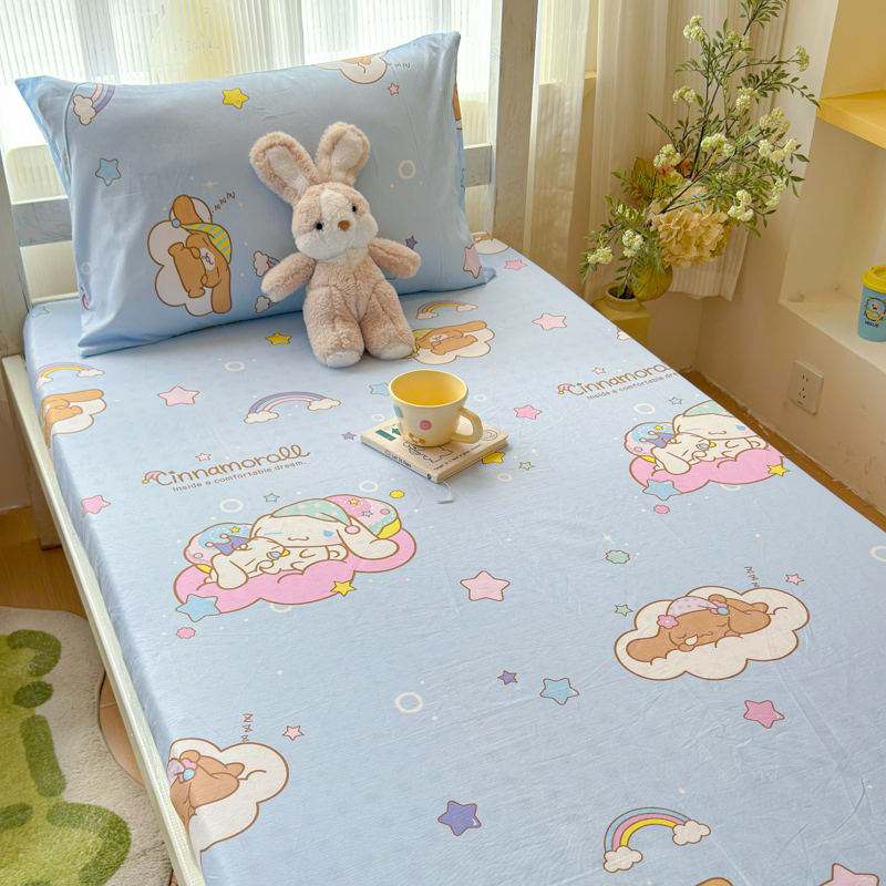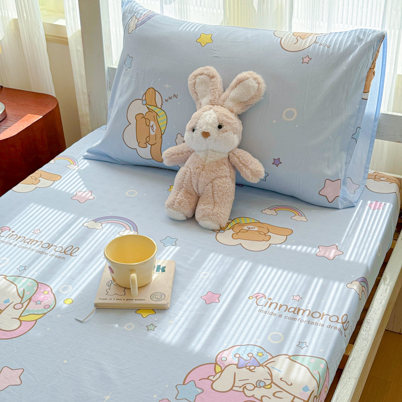 金丝鸟家纺 2025新款三丽鸥系列全棉斜纹13370单品床笠-学生床 彩虹大耳朵狗