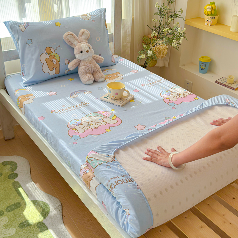 (总)金丝鸟家纺 2025新款三丽鸥系列全棉斜纹13370单品床笠-学生床,波点美乐蒂,彩虹大耳朵狗,条纹库洛米,晚安kt