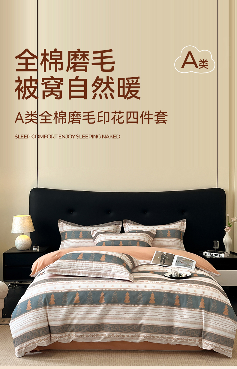 商品名称:笙意家纺 2025新款A类全棉纯棉磨毛刺绣印花四件套 意林