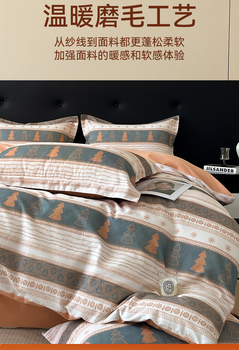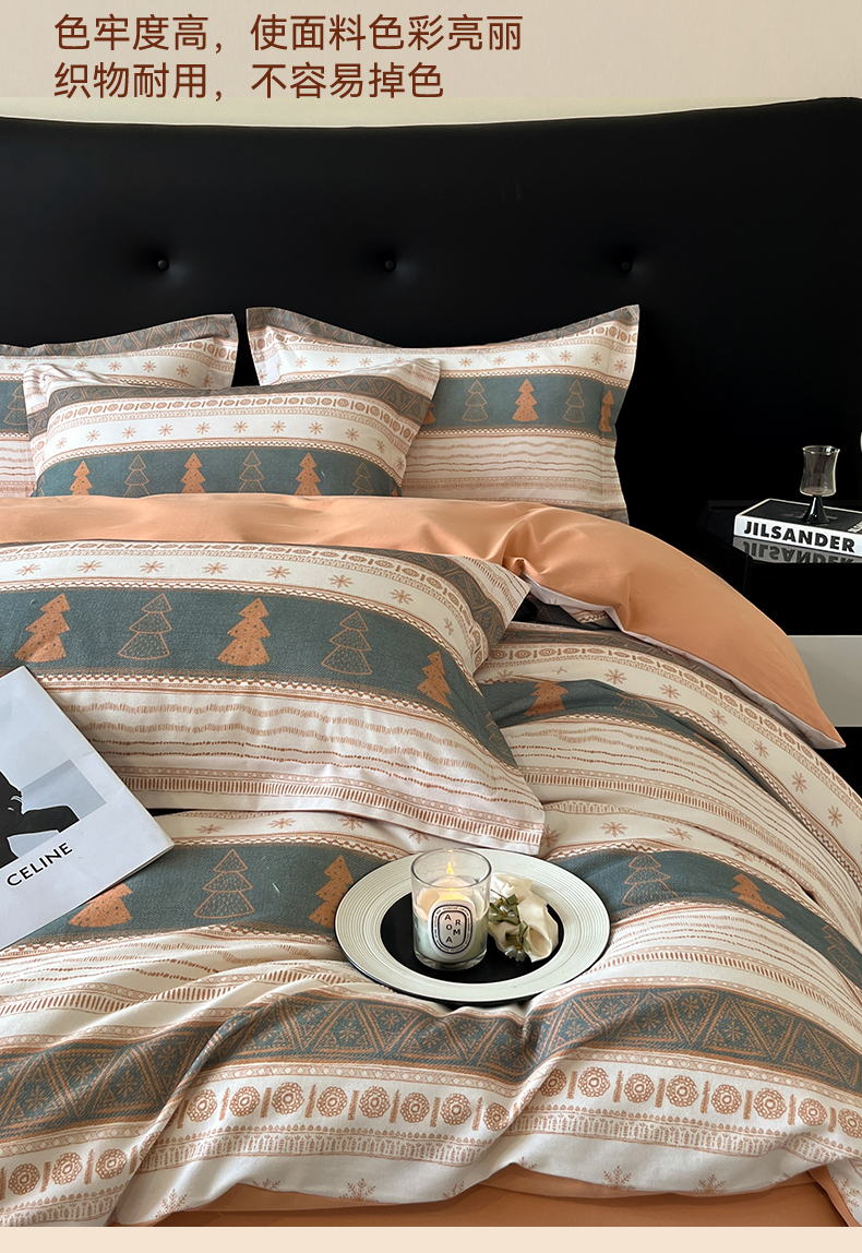 笙意家纺 2025新款A类全棉纯棉磨毛刺绣印花四件套 意林