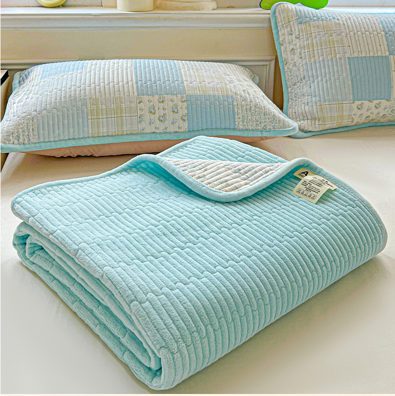 • 91家纺网 家纺一手货源 找家纺 恒尚居 2025新款学生床盖纯棉牛奶绒 正反两用夹棉床单床垫-秋冬款 四季通用-系列二 芳菲-蓝【A纯棉-B宝宝绒】