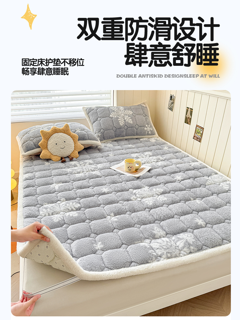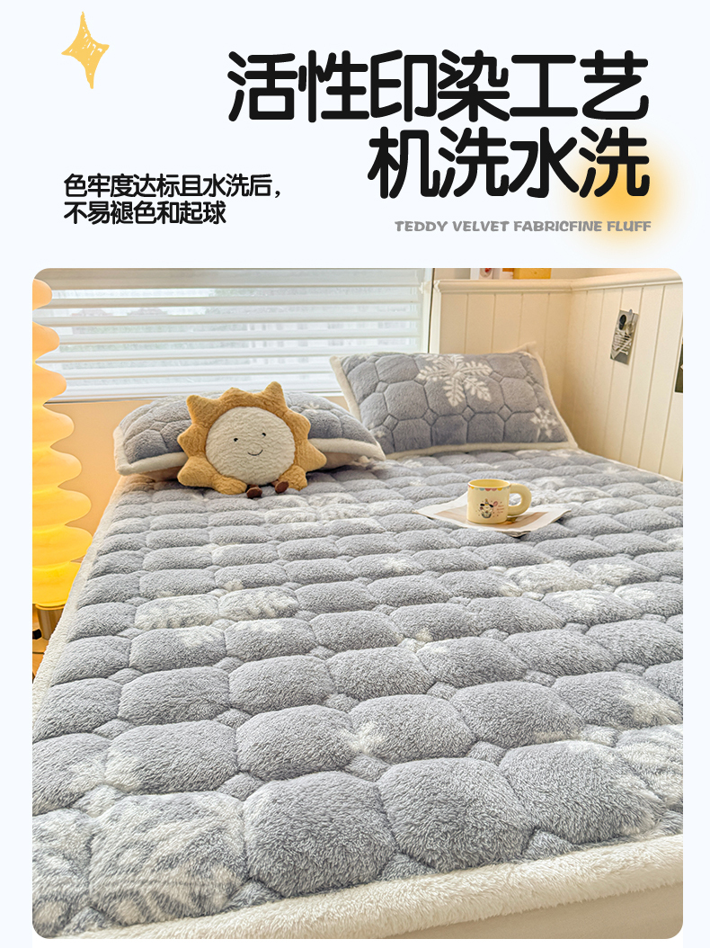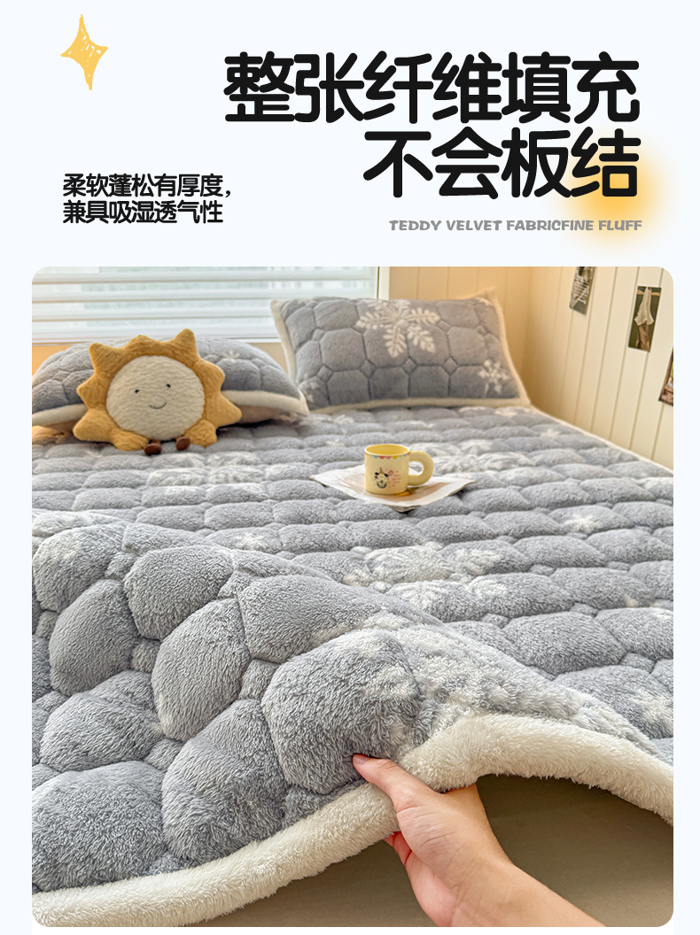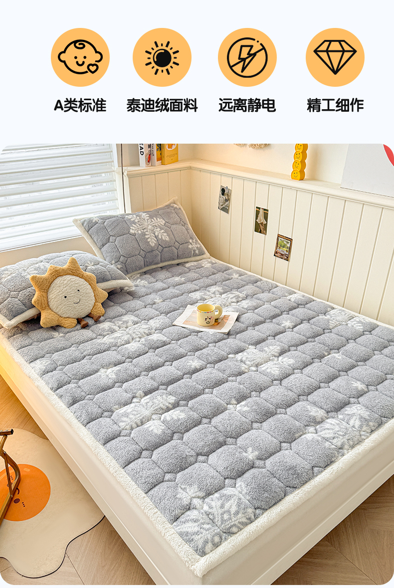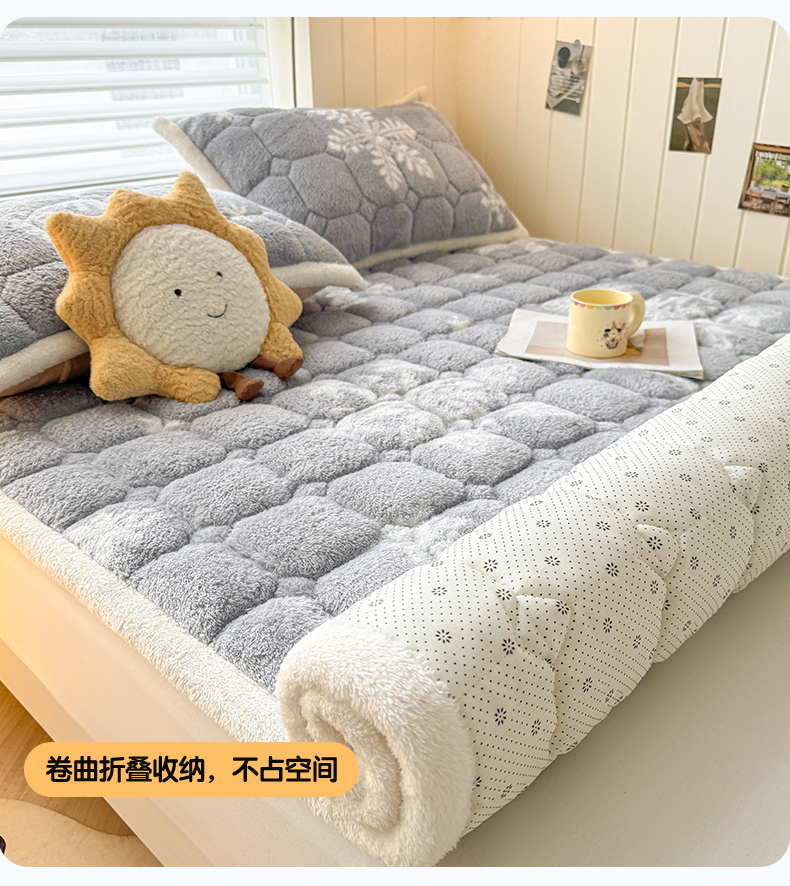 当前位置: 91家纺网 > 商品网购 > 床垫/床褥 > 普通床垫 > 雯豆家纺 2025新款泰迪绒夹棉床褥子学生宿舍床垫床护垫子加厚卡通保护垫 泰迪绒床褥-雪花飘飘-灰