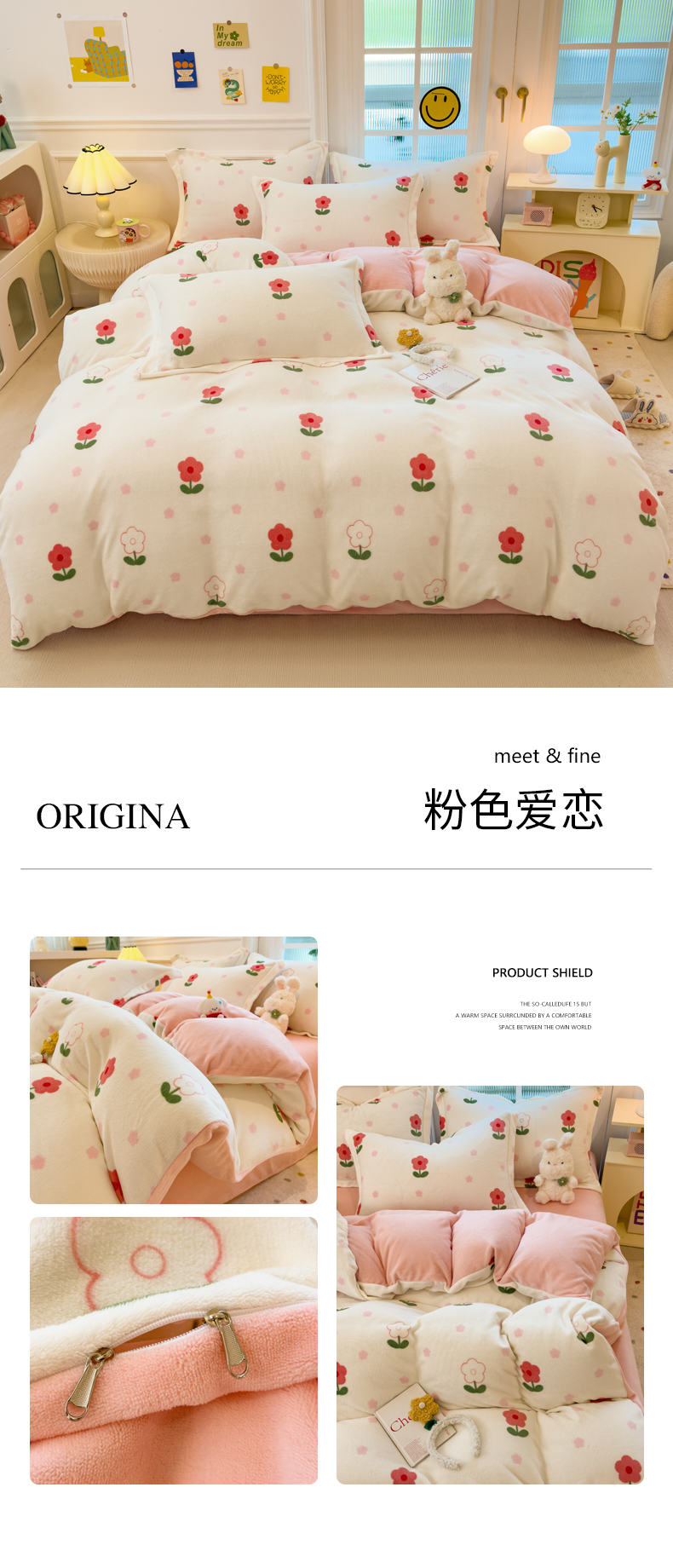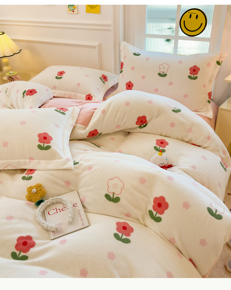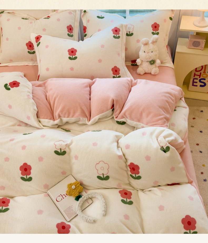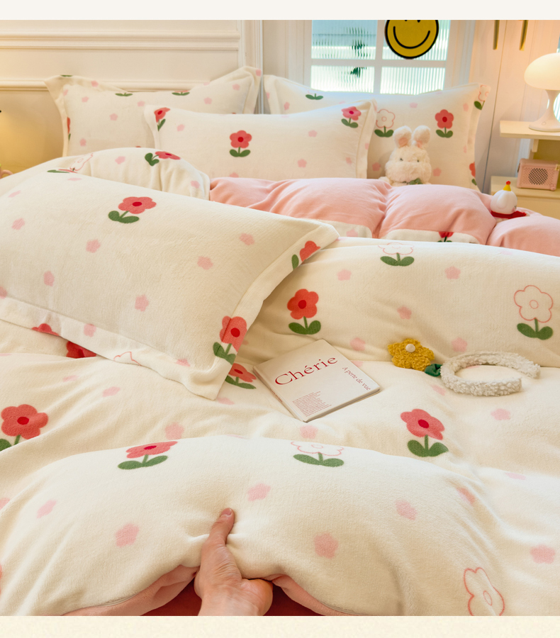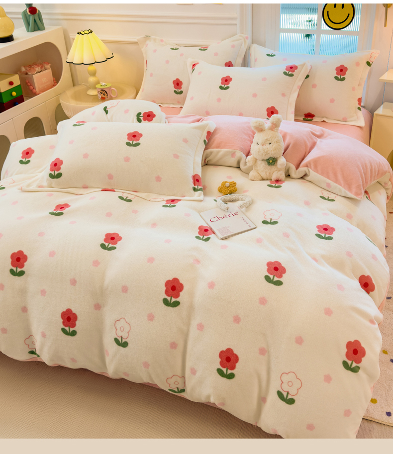 当前位置: 91家纺网 > 商品网购 > 床品套件 > 四件套 > 牛奶绒四件套 > 丝羽坊 2025新款200克加厚小清新牛奶绒床单款 床笠款四件套 被套 粉色爱恋