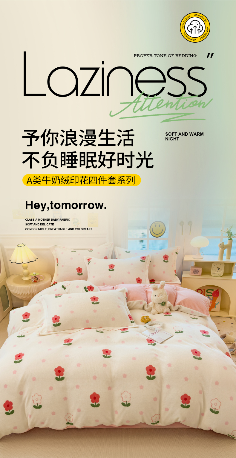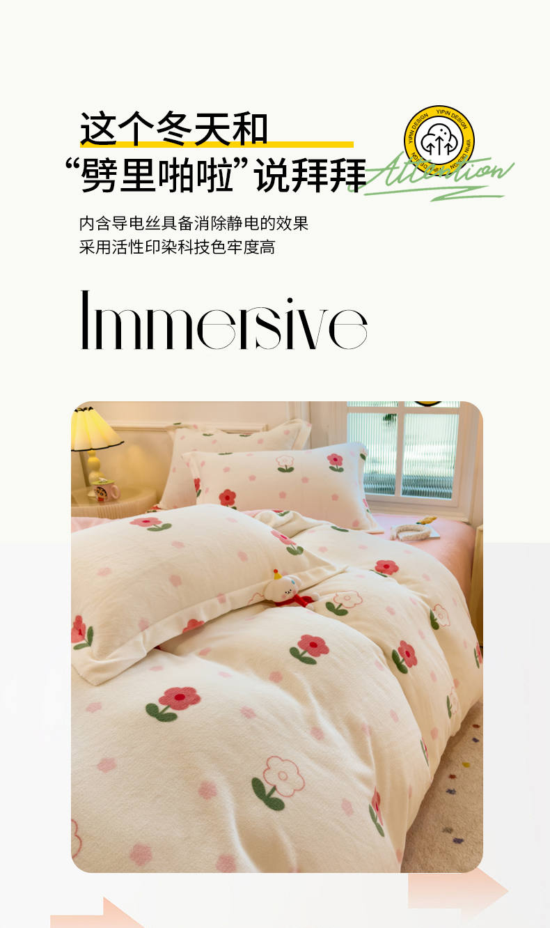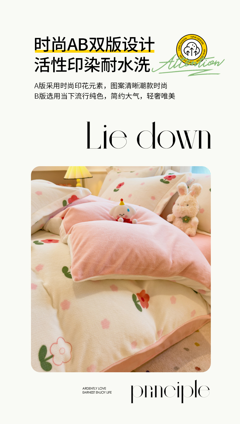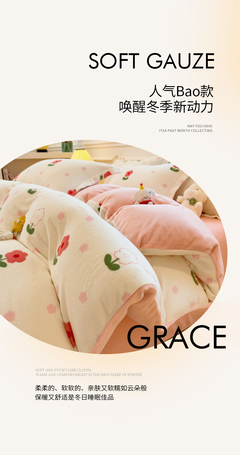 当前位置: 91家纺网 > 商品网购 > 床品套件 > 四件套 > 牛奶绒四件套 > 丝羽坊 2025新款200克加厚小清新牛奶绒床单款 床笠款四件套 被套 粉色爱恋