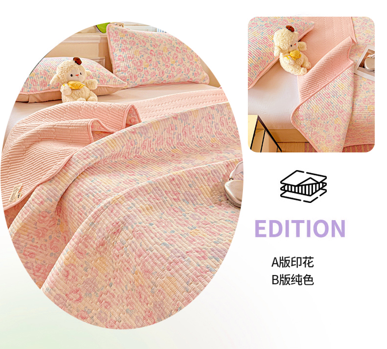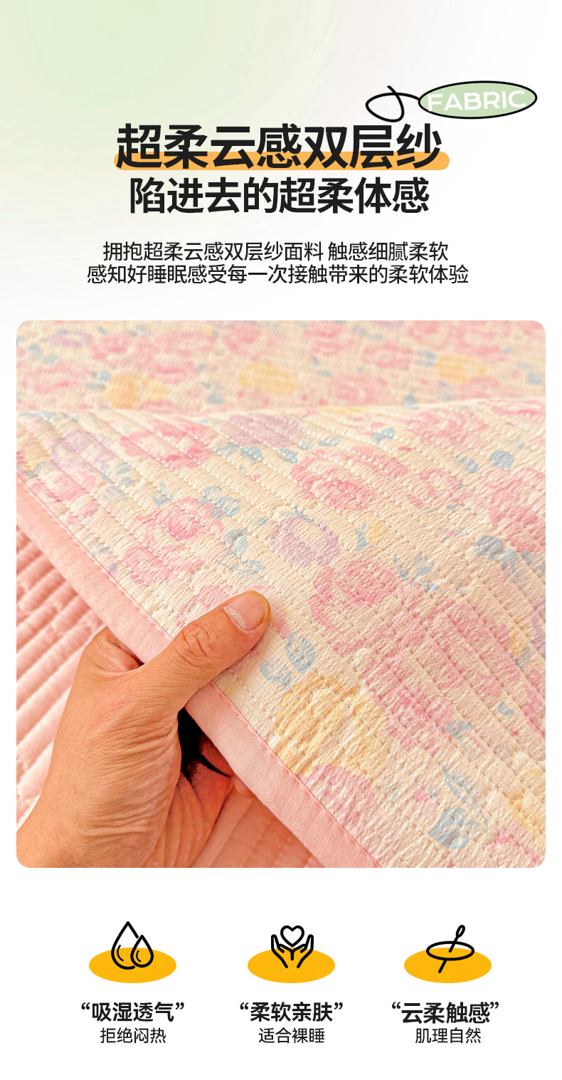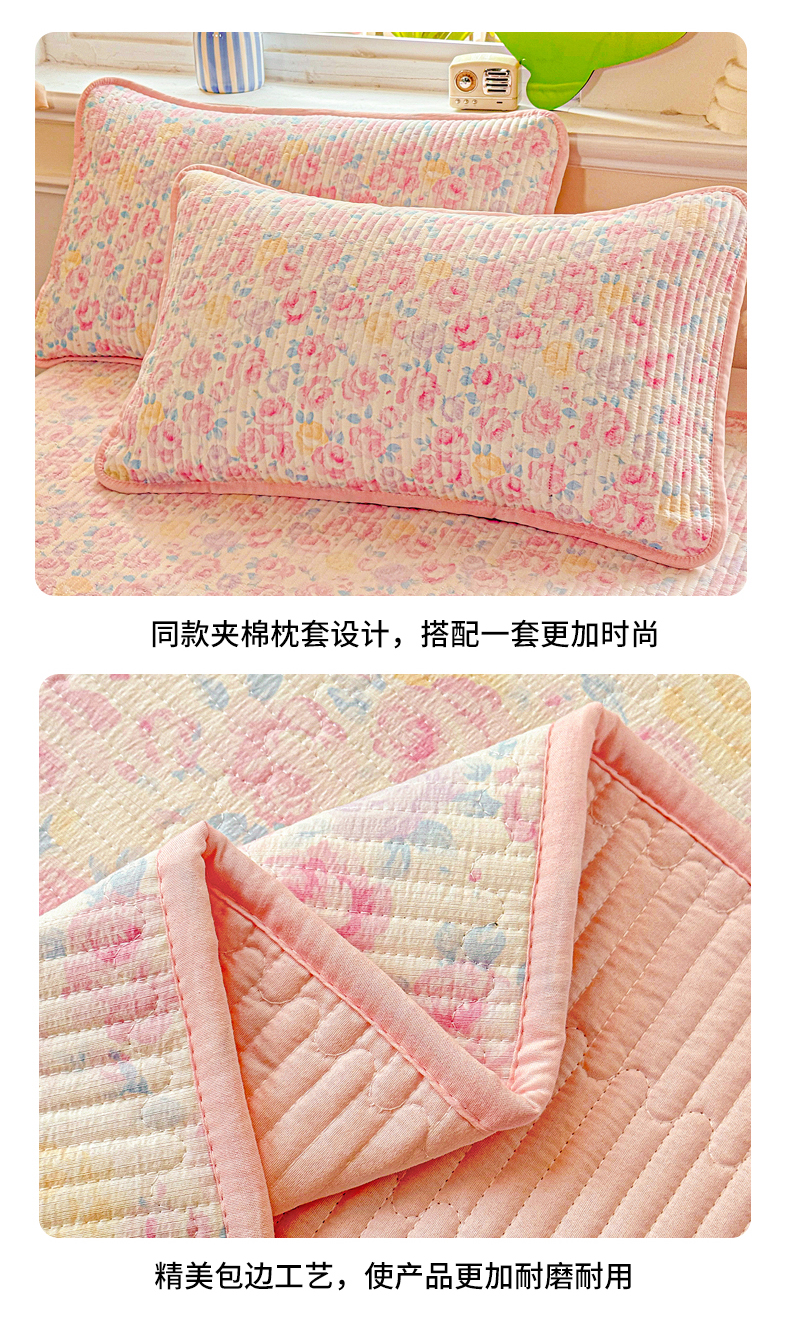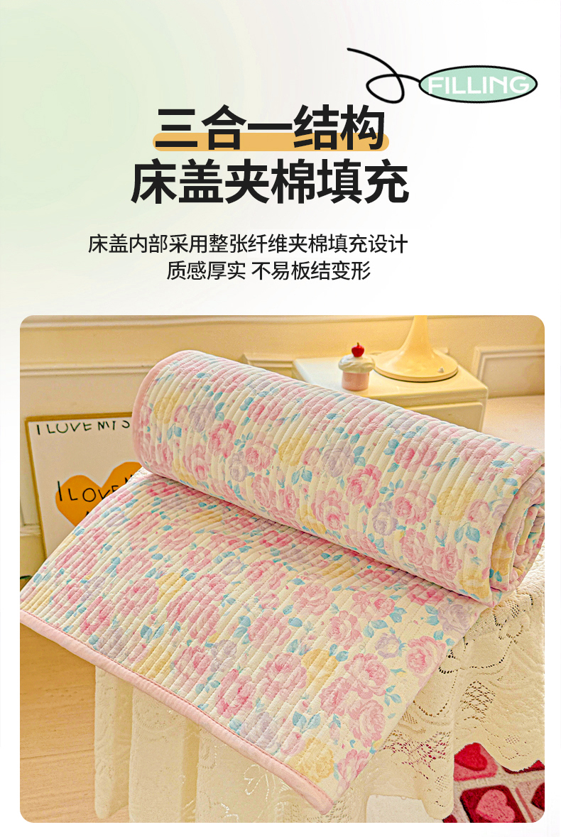 • 91家纺网 家纺一手货源 找家纺 恒尚居 2025新款双层纱床盖床盖单品单床盖云感夹棉床单床垫软床垫-四季款【系列一】 【玫瑰印象】双层纱