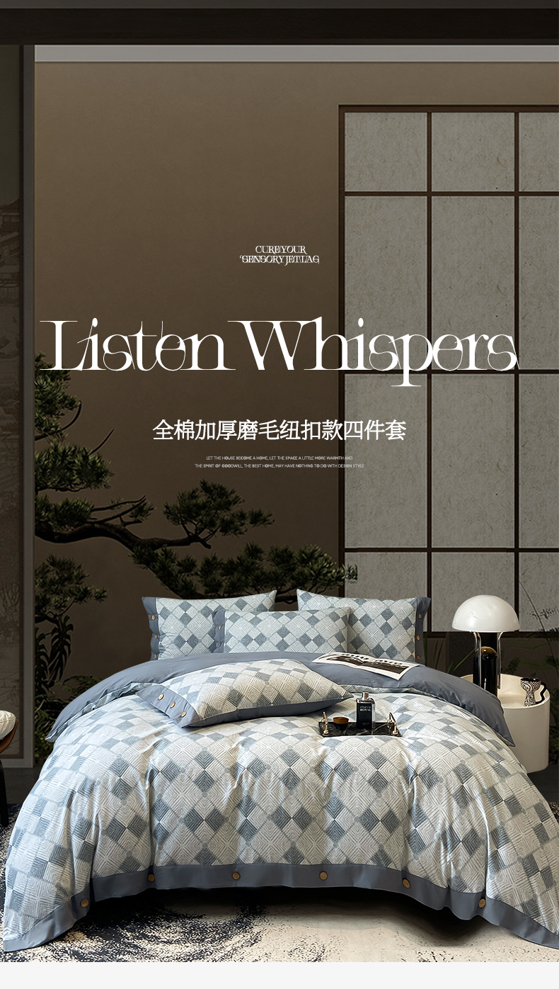 麦田家纺 2025新款全棉纯棉轻奢加厚磨毛纽扣款四件套 格律时尚