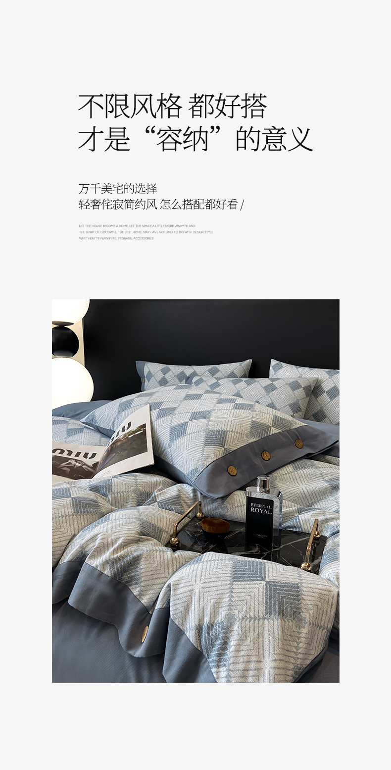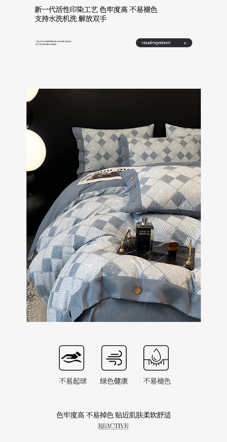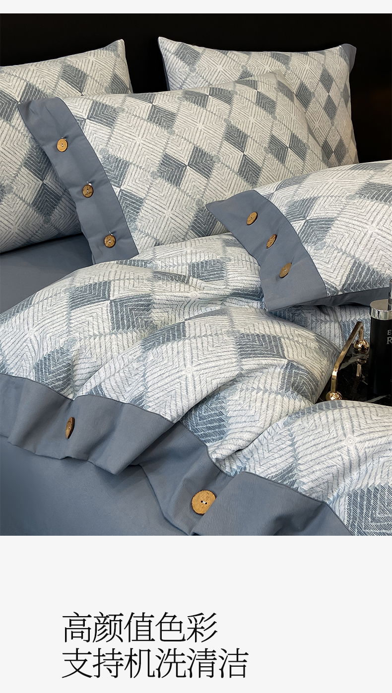 商品名称:麦田家纺 2025新款全棉纯棉轻奢加厚磨毛纽扣款四件套 格律时尚