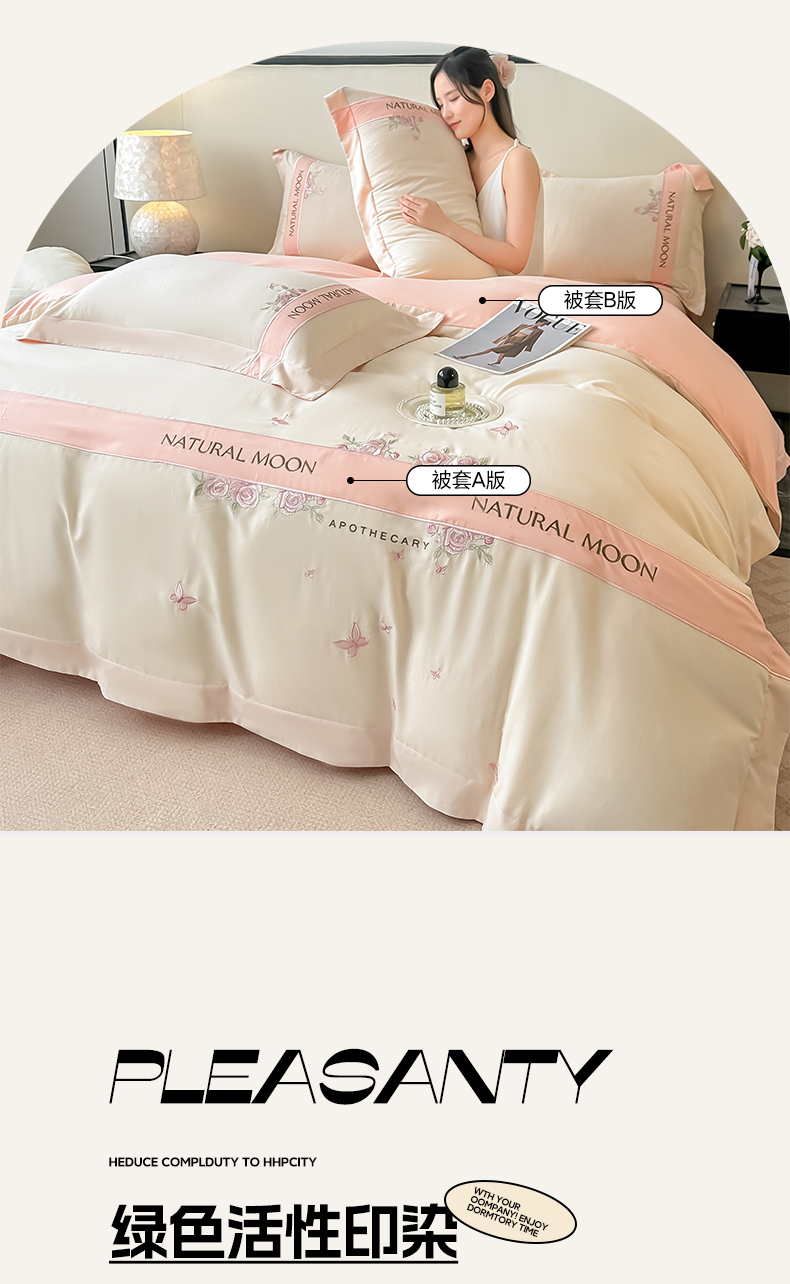 (总)2025新款小清新全棉纯棉四件套-若溪,麦田绿,茉莉奶白,霞光紫,杏花粉,雪山粉