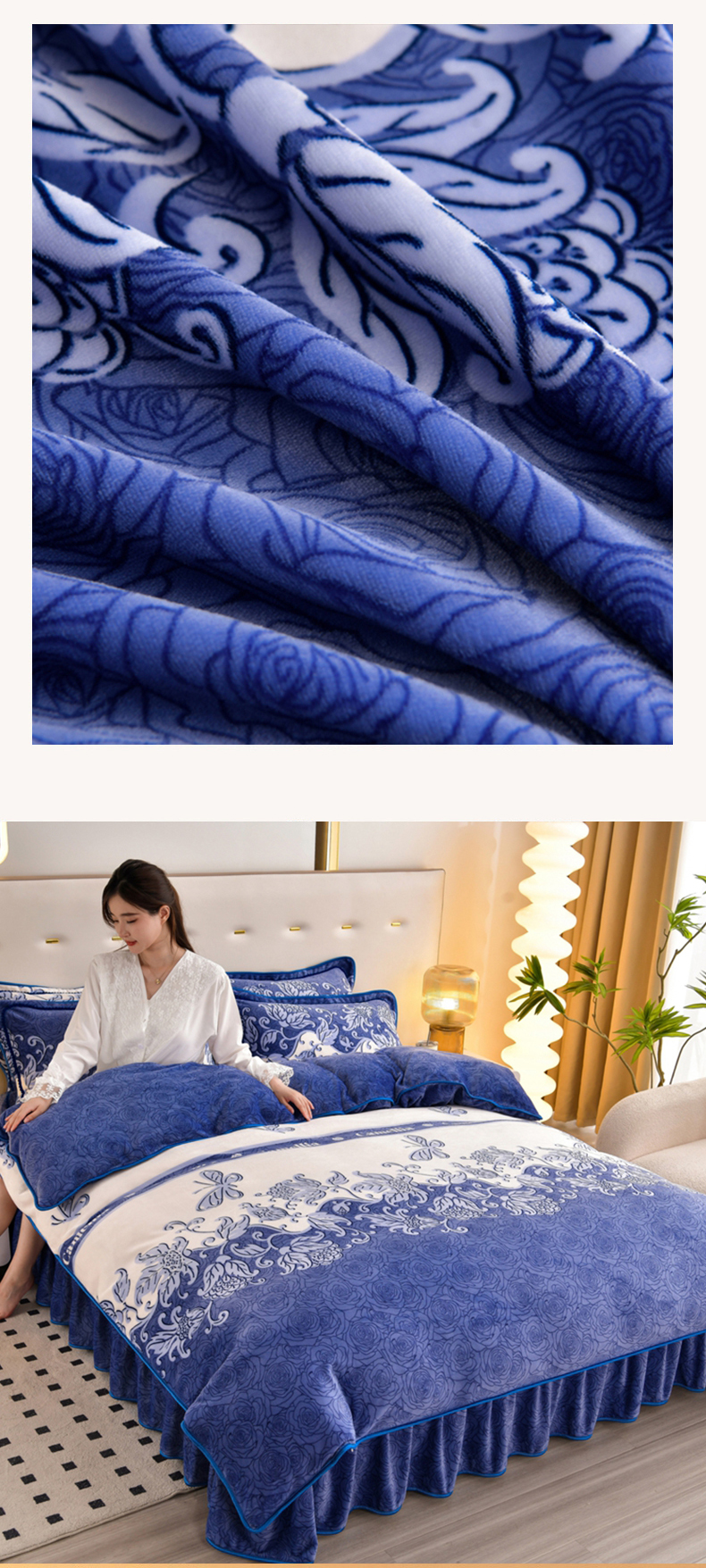 芯诗曼2025新款8.5斤直播热款高克重牛奶绒法莱绒水晶金貂法莱绒四件套幸运一生,幸运一生,雍容华贵
