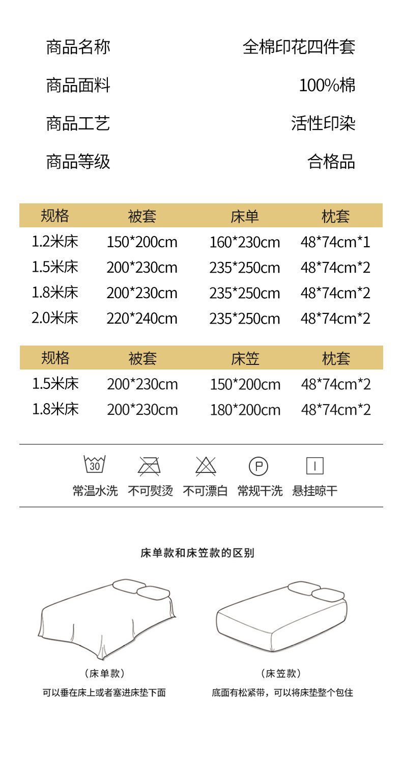 1.5m床笠款四件套 | ¥80.00 |