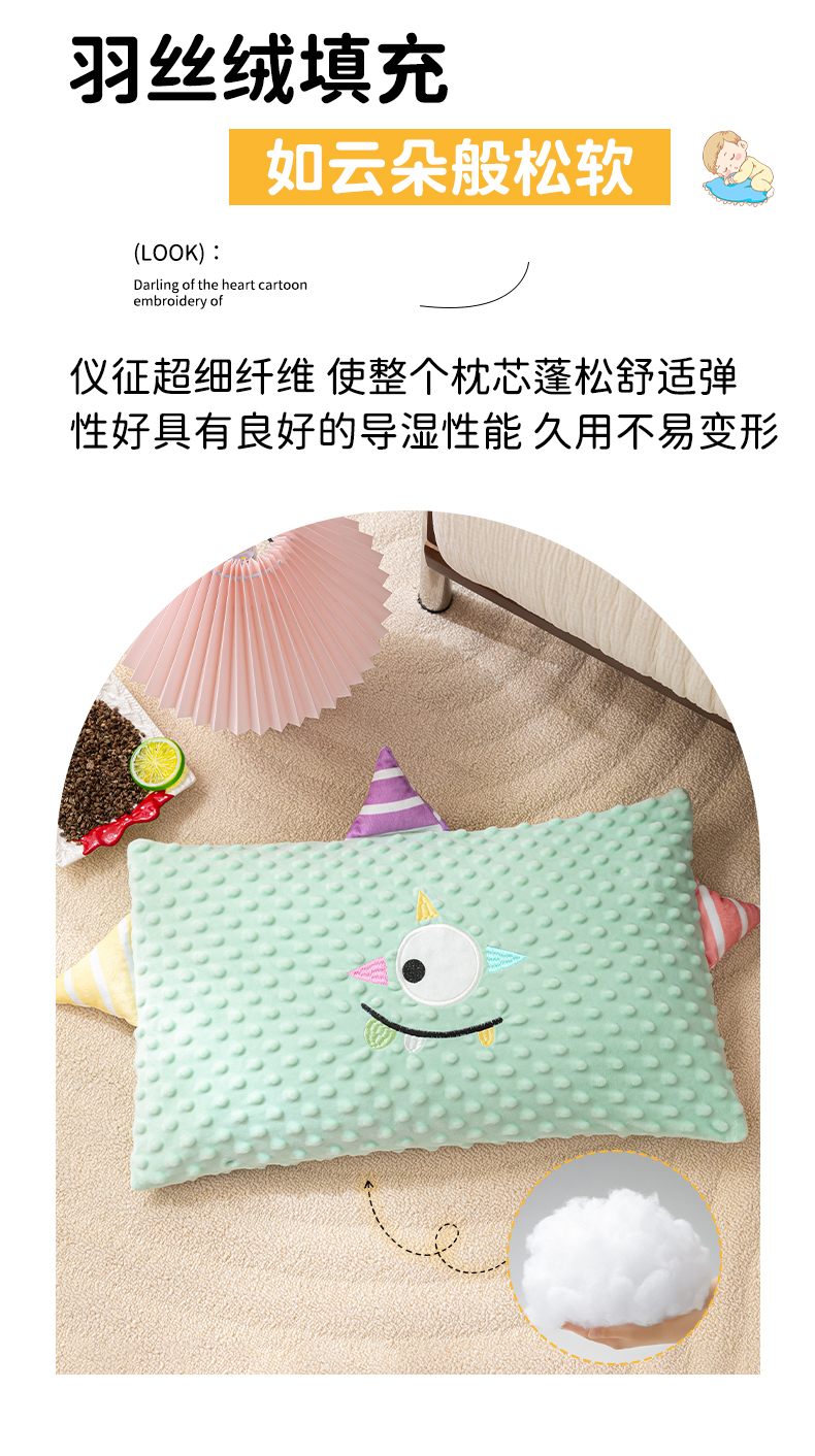 当前位置: 91家纺网 > 商品网购 > 枕头/枕芯/保健枕/颈椎枕 > 普通枕芯 > 织布人 2025新款枕芯豆豆绒小怪兽卡通儿童枕学生枕开学季宿舍枕头枕芯 豆豆绒太空枕-太空眼桔色 30x50cm/只