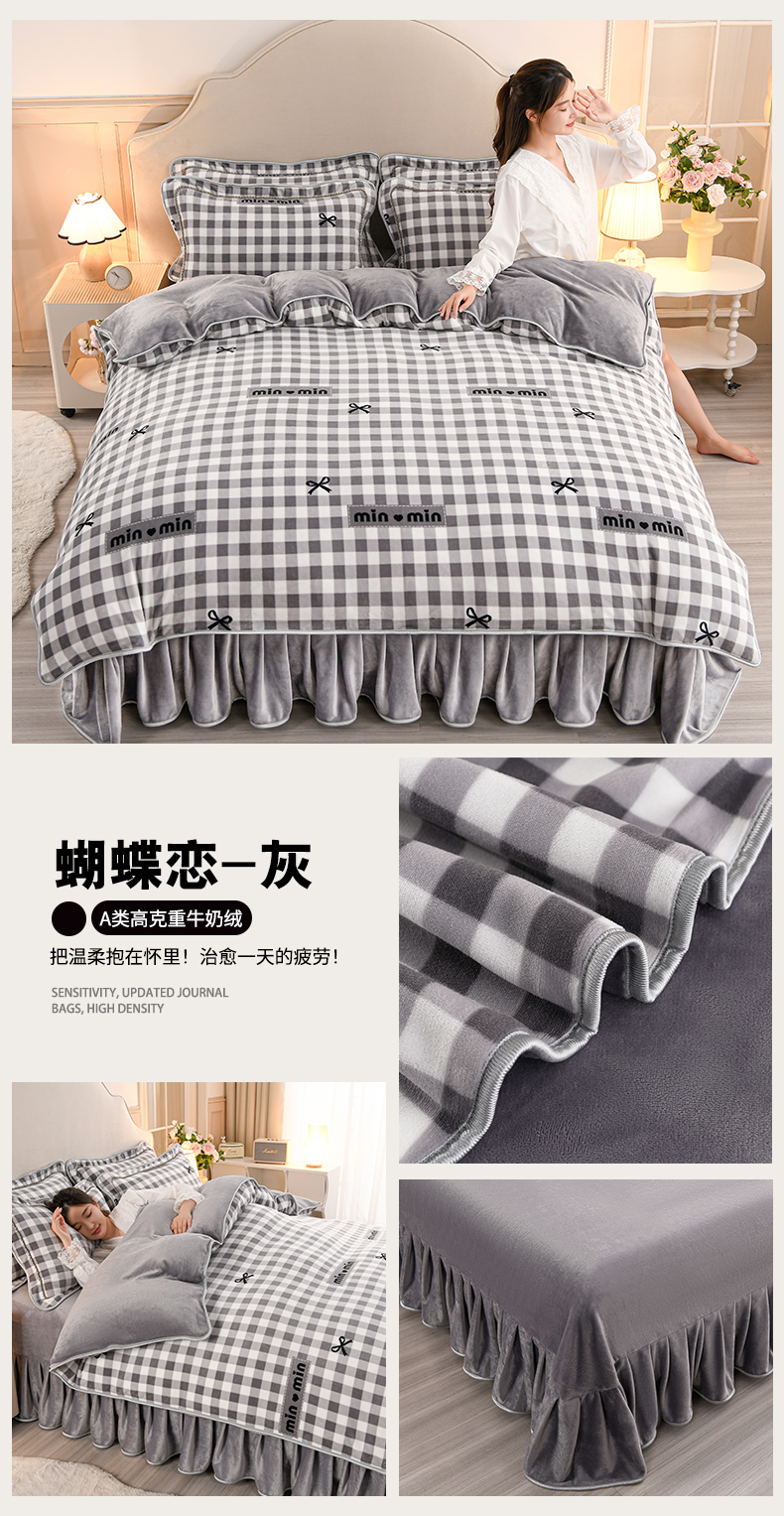 商品名称:羽梦2025新款8.5斤牛奶法莱绒金貂法兰绒四件套直播爆款蝴蝶恋-灰