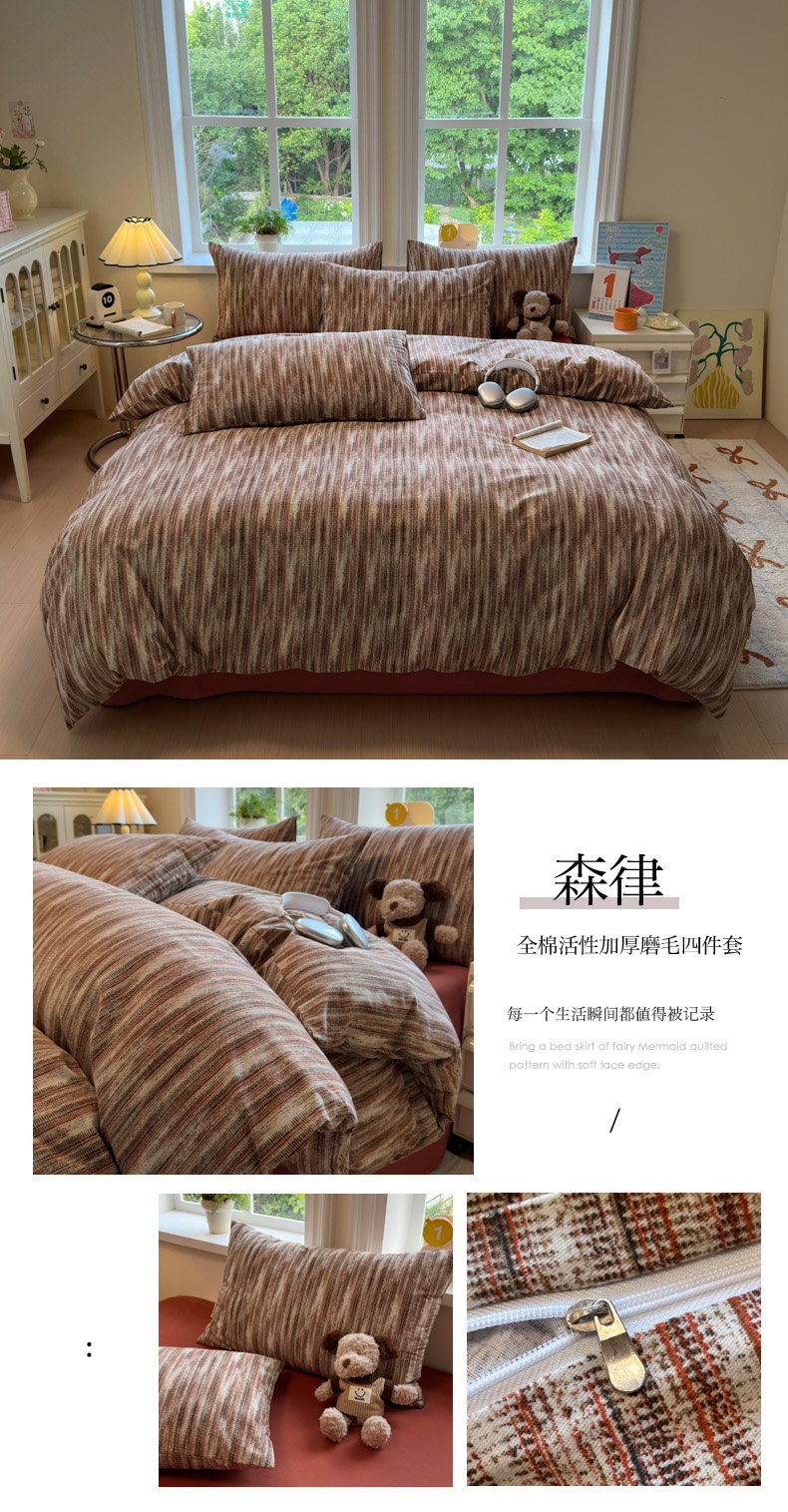 当前位置: 91家纺网 > 商品网购 > 床品套件 > 四件套 > 普通磨毛四件套 > 如意朵 2025新款全棉纯棉磨毛四件套 可可-咖