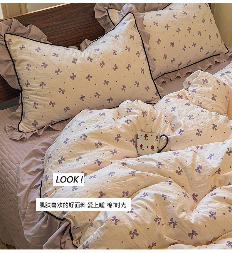(总)美梦家纺 2026春夏新款全棉花边全棉床盖四件套系列,芊芊花海,波点蝴蝶结·咖,春暖花开,花悦,凯蒂乐园,南瓜甜心,微微安·粉,香叶之恋,小精灵
