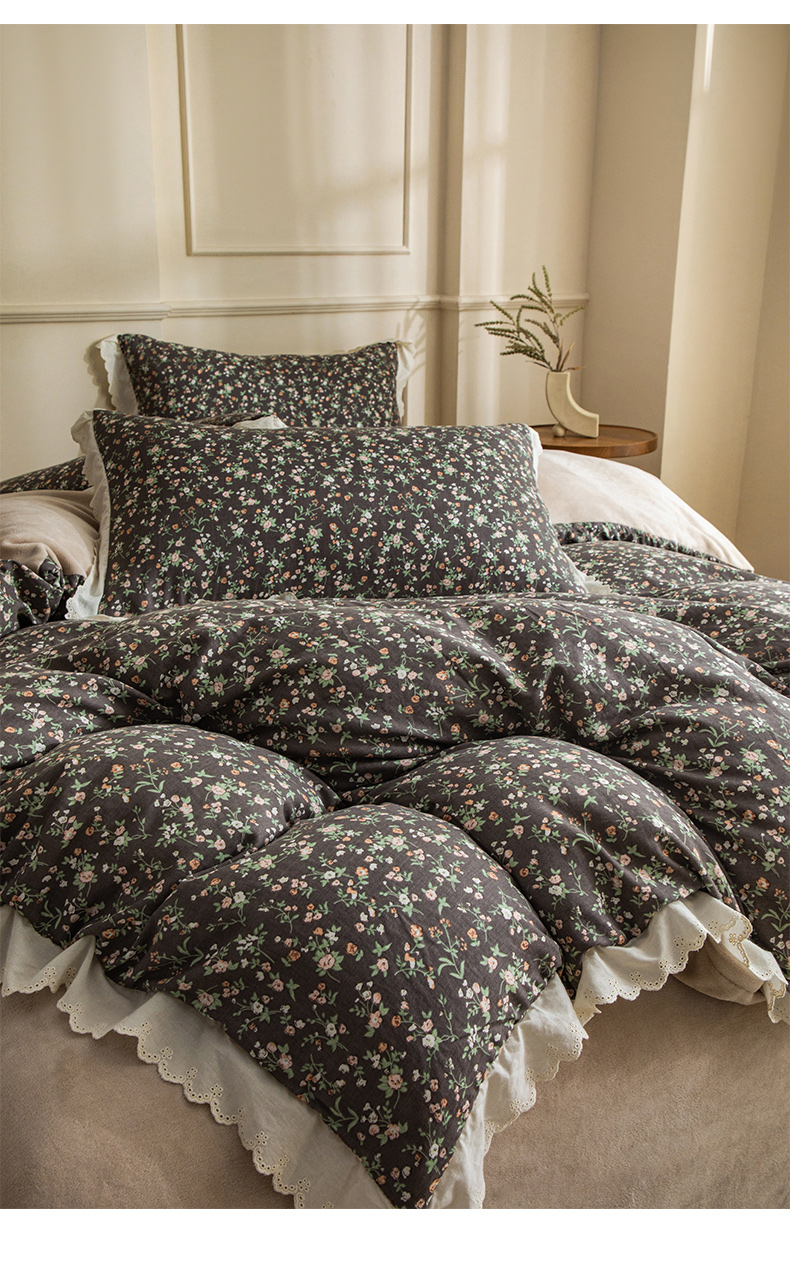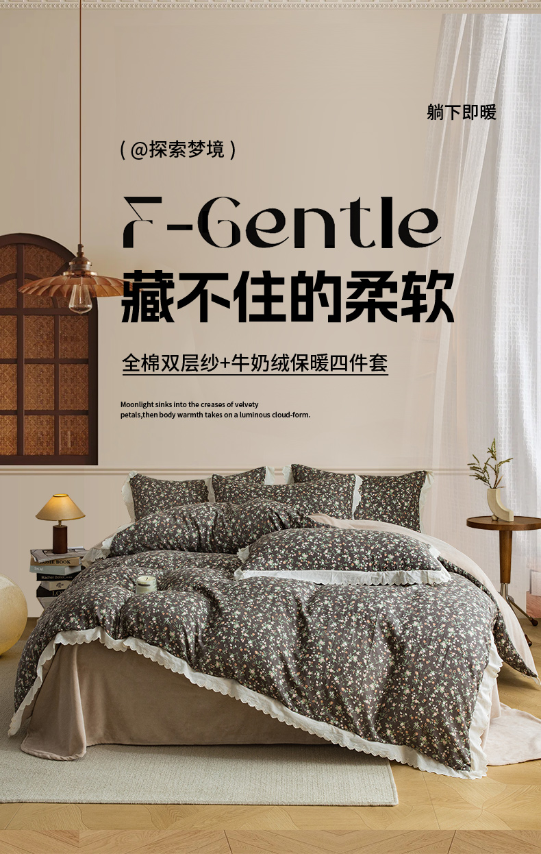 (总)大境 2025秋冬新款A类全棉双层纱棉加牛奶绒四件套韩版公主风