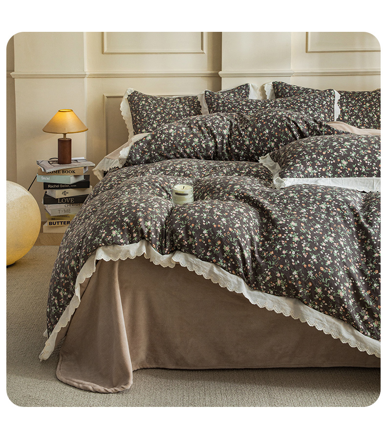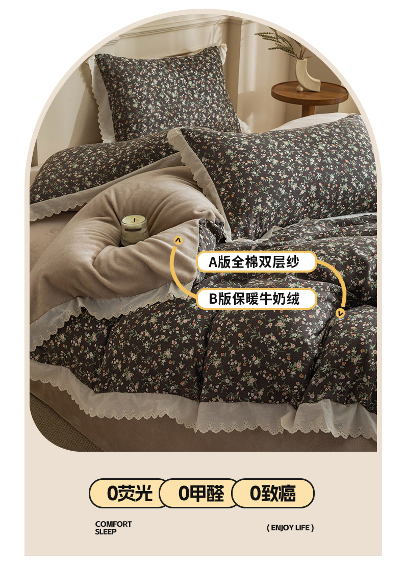 商品名称:(总)大境 2025秋冬新款A类全棉双层纱棉加牛奶绒四件套韩版公主风