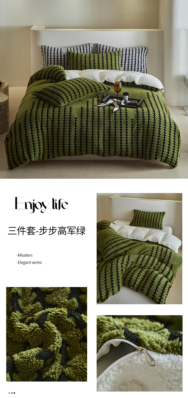 商品名称:温宁家纺 2025新款步步高被套毯毛毯盖毯三件套单被套可配枕套 三件套-步步高军绿