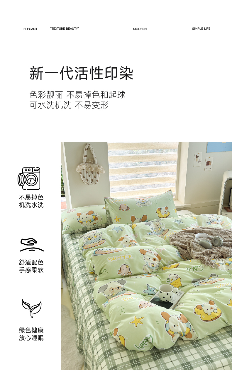 当前位置: 91家纺网 > 商品网购 > 床品套件 > 四件套 > 全棉普通四件套 > 可可家纺 2025新款印花卡通芦荟棉四件套亲肤床单被套三件套 夏日萌犬