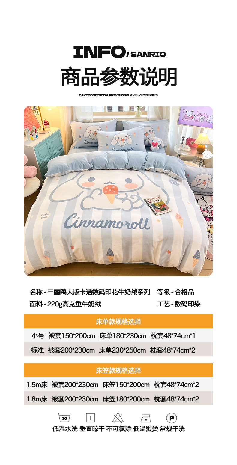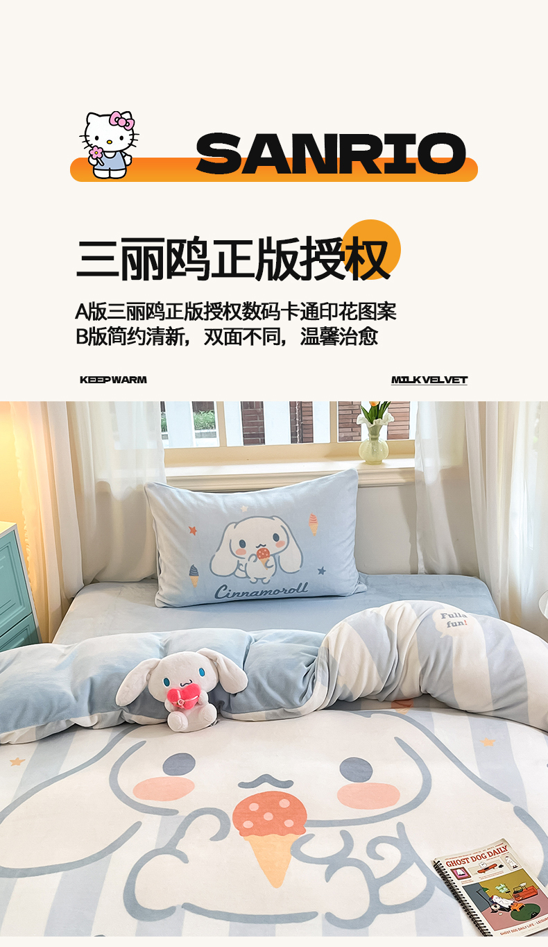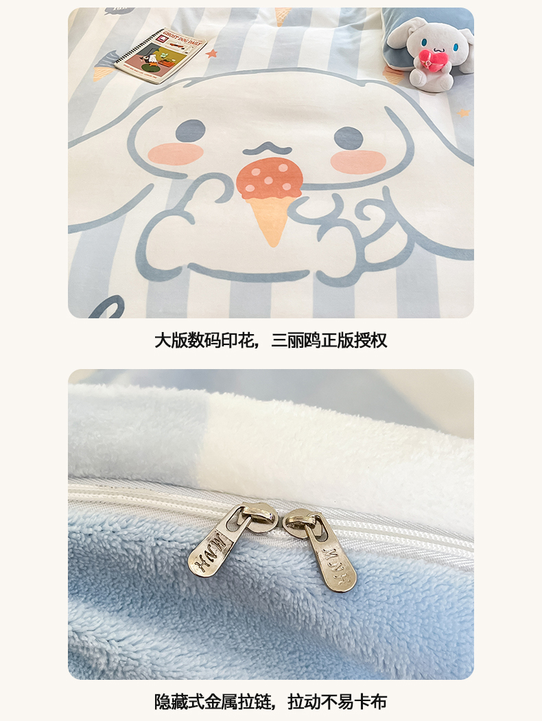 当前位置: 91家纺网 > 商品网购 > 床品套件 > 四件套 > 牛奶绒四件套 > 金爱家 2025新款正版三丽鸥授权大版卡通平网数码印花加厚高克重牛奶绒系列四件套-第一批 绒大版-R蓝条冰淇淋大耳狗
